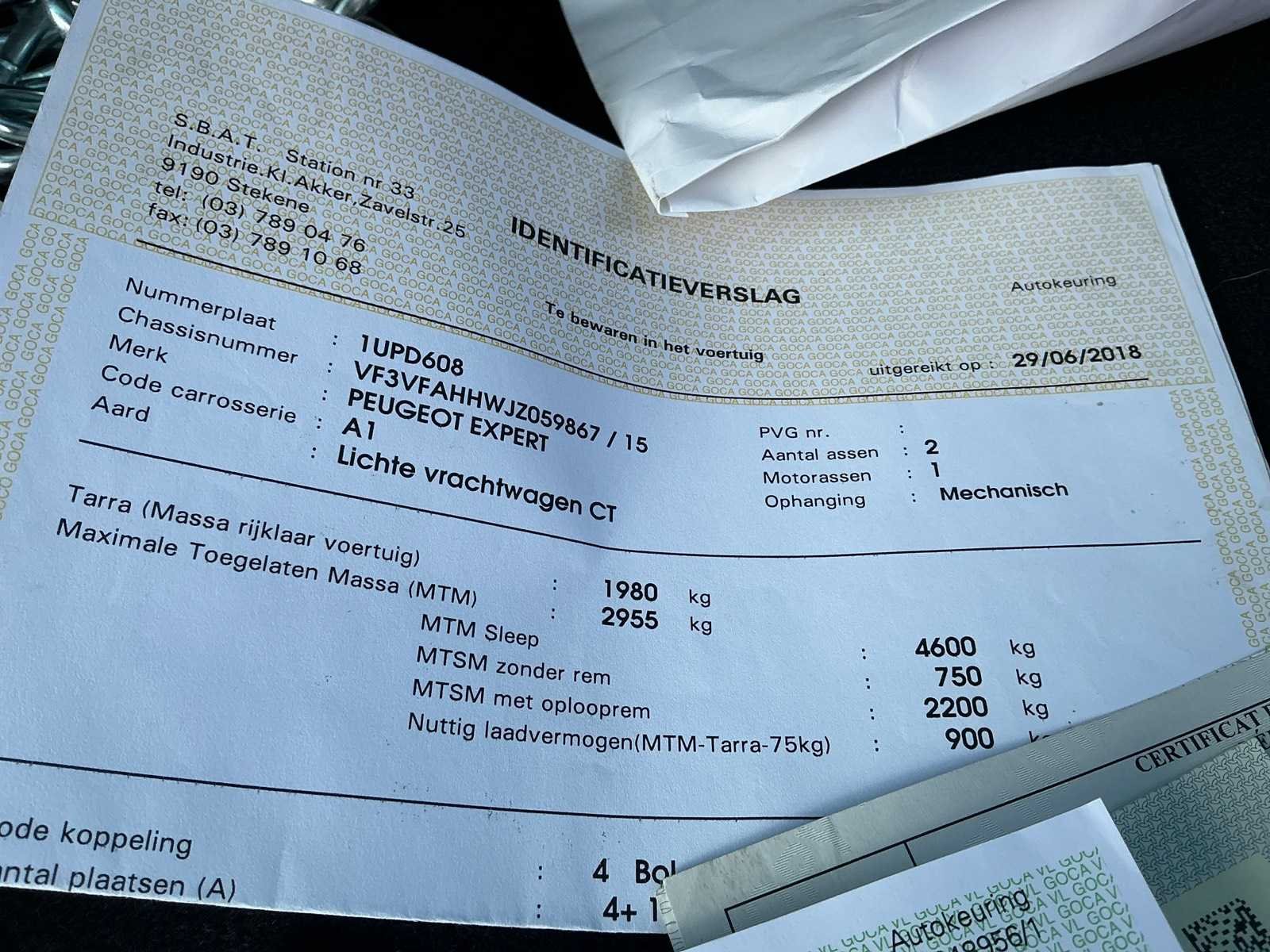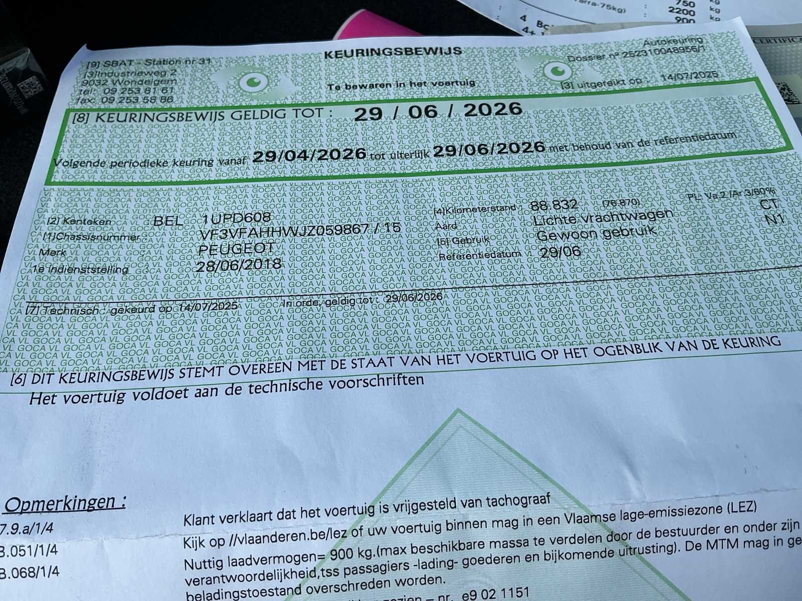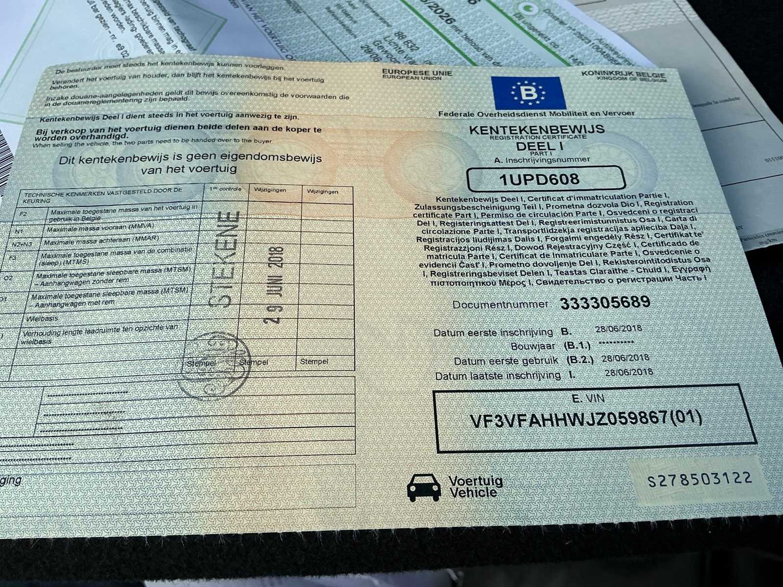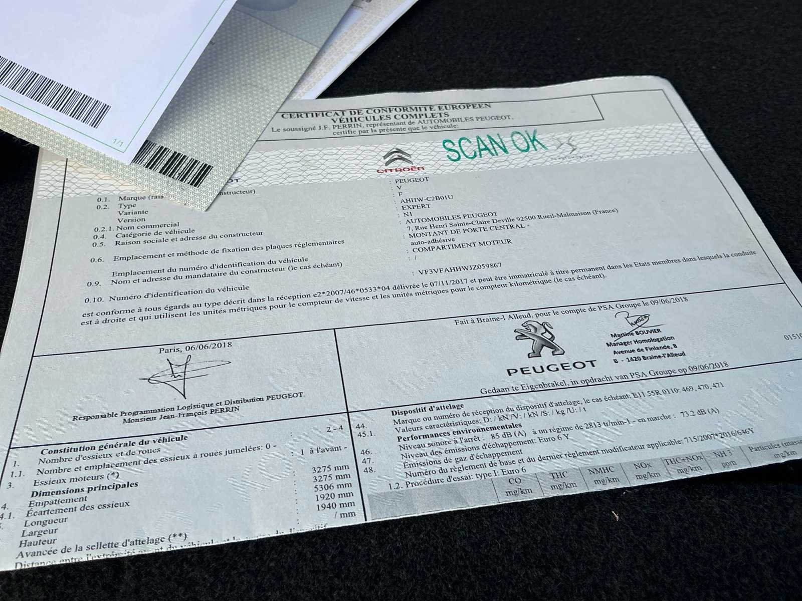 Boorddocumenten: inschrijvingsbewijs deel I en II, gelijkvormigheidsattest en identificatieverslag aanwezig Kenteken: 1UPD608 Merk: Peugeot Type: Expert Bouwjaar: 2018 Chassisnummer: VF3VFAHHWJZ059867 Afgelezen kilometerstand: 89762km Cilinderinhoud: 1997cc Vermogen (kW): 130kW Brandstof: diesel Datum eerste inschrijving: 28/06/2018 Transmissie: Automaat Aantal zitplaatsen: 5 Stuurwiel: Multifunctioneel Aantal deuren: 6 Emissieklasse: EURO VI