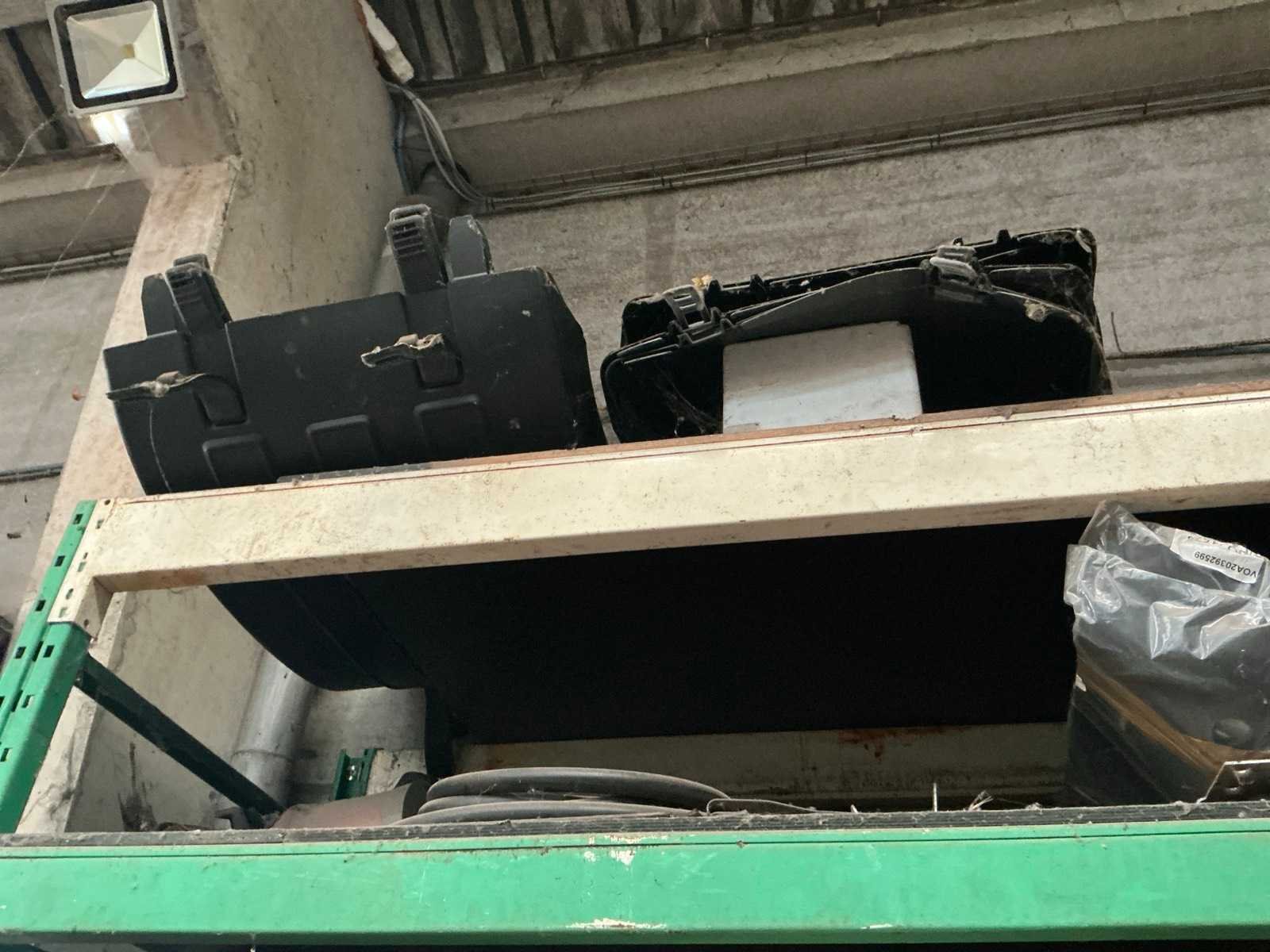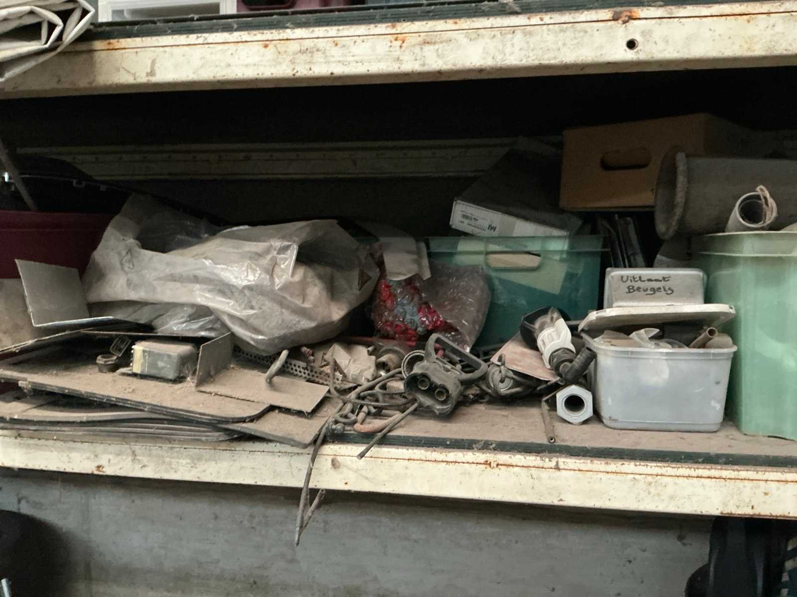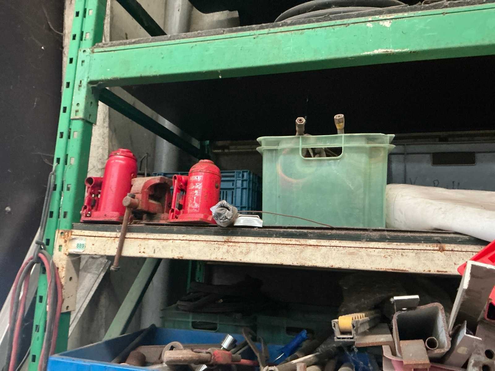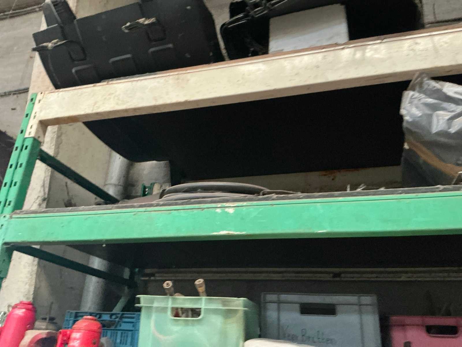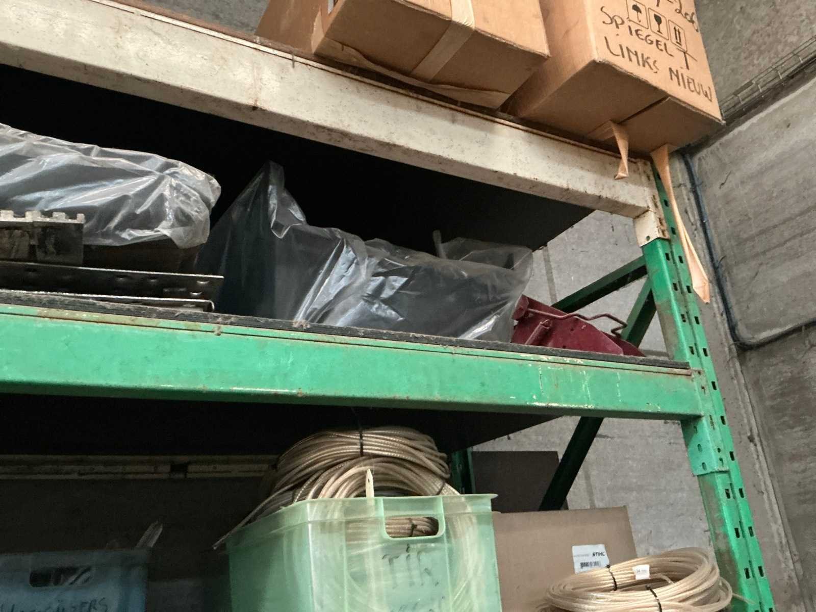 Bestaande uit 2x staander hoogte circa 300cm breedte 100 cm. 8x ligger lengte 300 cm. Inhoud bestaande uit vrachtwagen onderdelen zoals uitlaat stukken, plaatverlichting, spatborden, TIR koord, spiegels enz.