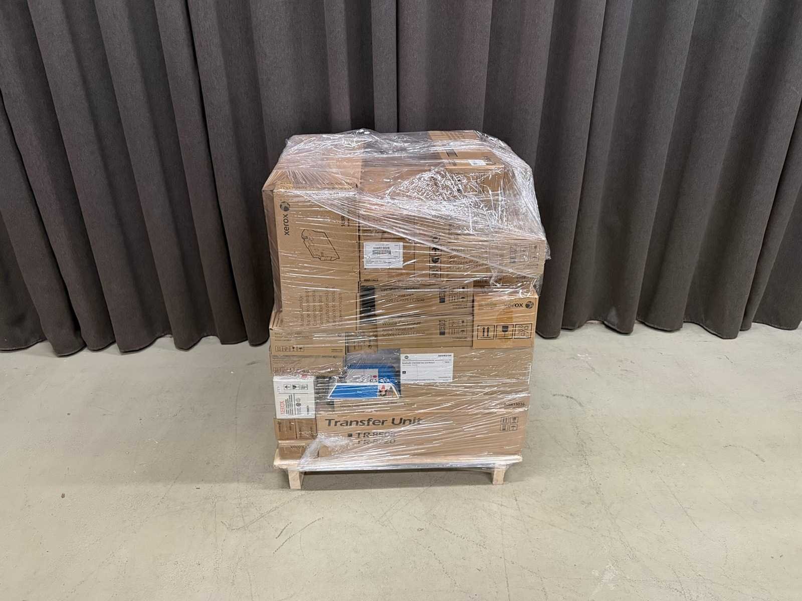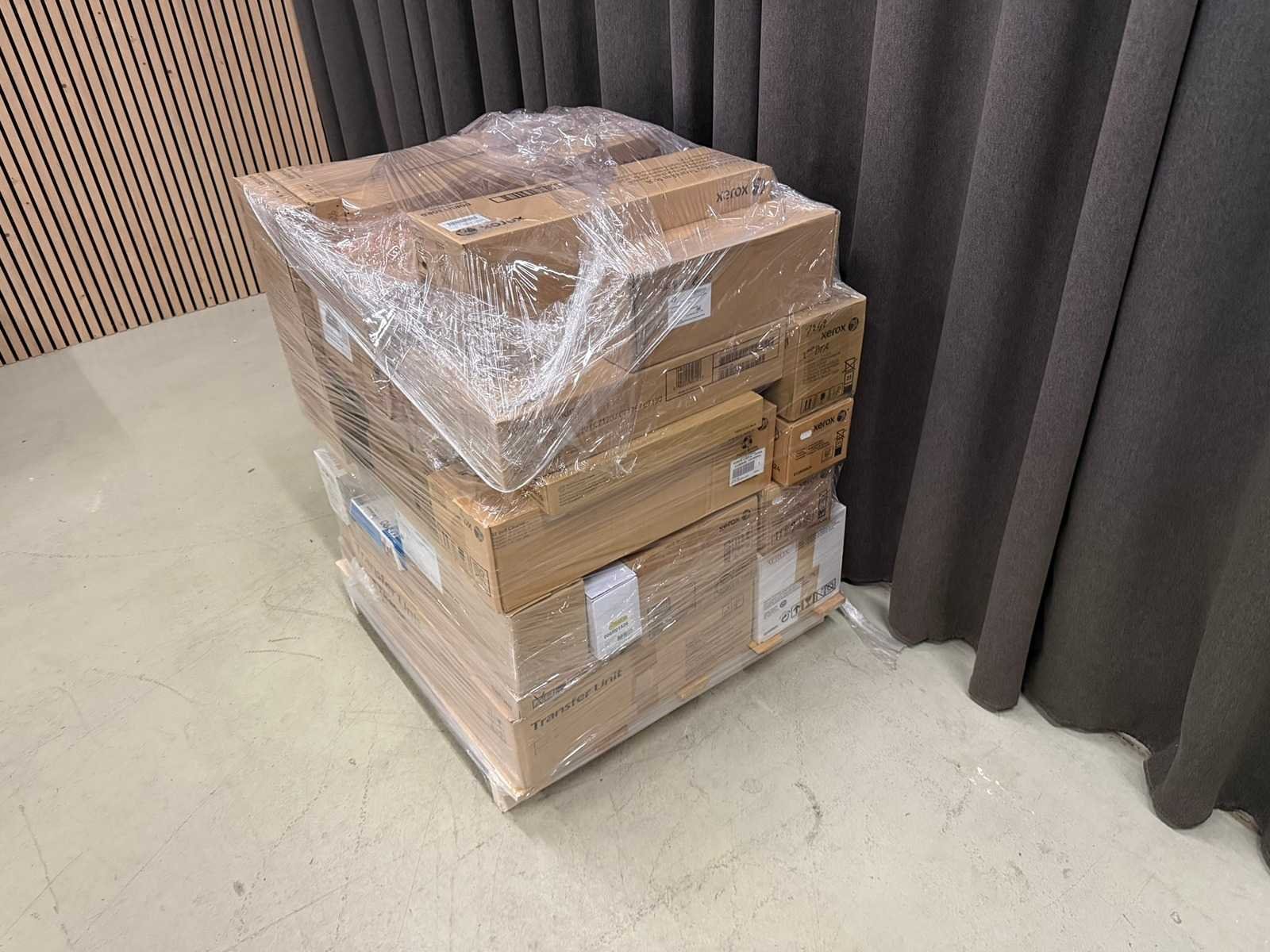 Gemengde pallet met cartridges, onderdelen en overige benodigdheden. Merk: Mixed