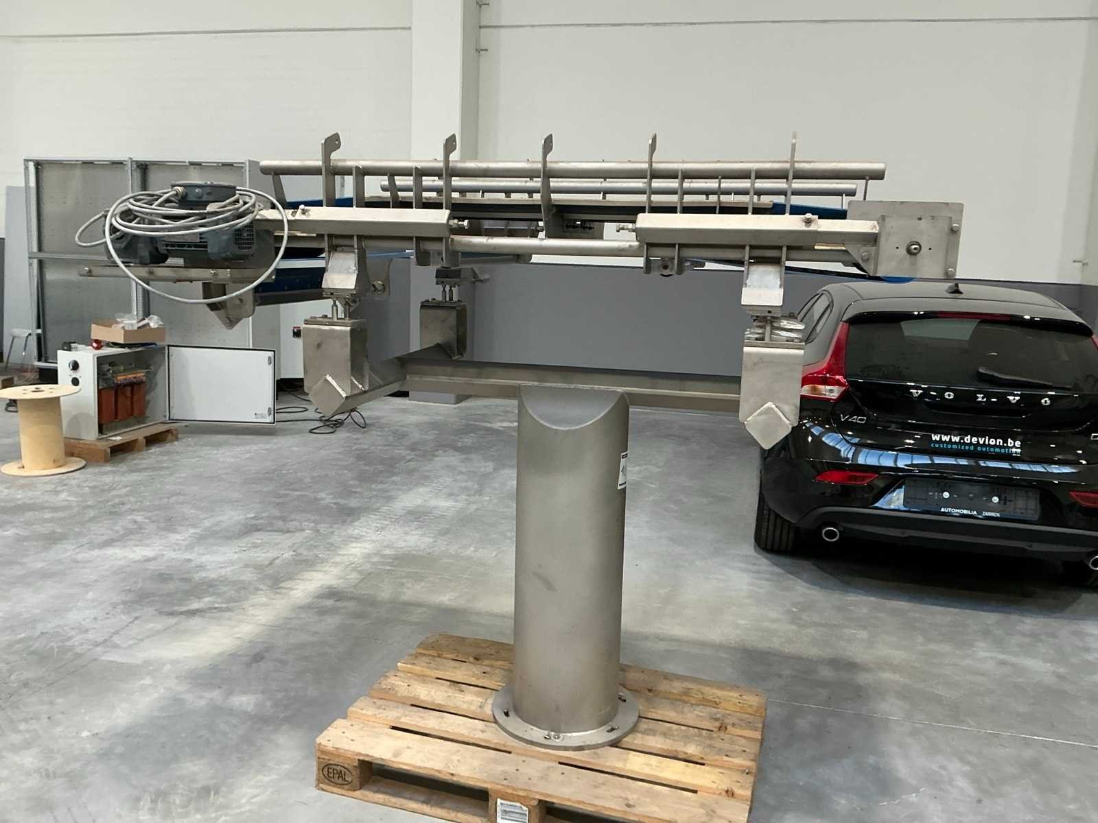 Steunend op koker met diameter 350mm Merk: NG Band afm. b: 600mm Band afm. l: 1850mm Aansluiting: 230V Totale afmeting L: 2000mm Totale afmeting Breedte: 1200mm Totale afmeting Hoogte: 1700mm
