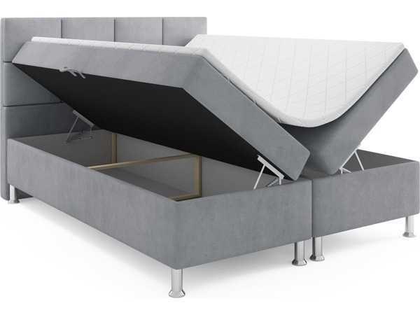 Type: Napoli tweepersoonsbed; afmeting B: 160 cm; afmeting L: 200 cm; stof; boxspring bestaande uit: 1 x hoofdbord, 2x box, 2x luxueus gestoffeerd matras, topper; kleur: grijs stof; staat: in verpakking; Matras inbegrepen: true