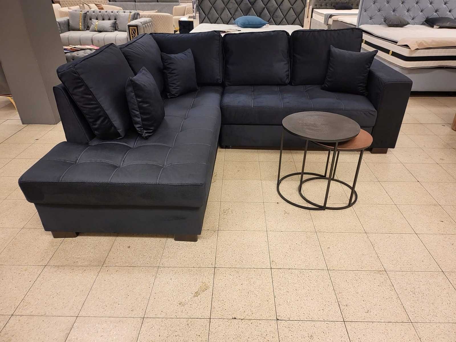 Type: Morgan; afmeting L: 290 cm, B: 205 cm; hoeksalon bestaande uit: 2 zitten, longchair; kleur: donker grijs; poten: 6; staat: in verpakking;