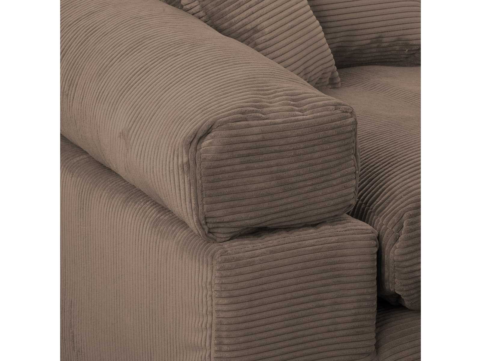 Type: King ; afmeting L: 280 cm; B: 350 cm; hoeksalon bestaande uit: 3 zitten, hoek, 2 zitten, kleur: bruin ; poten: 16; staat: in verpakking;