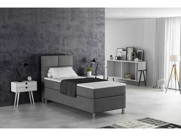 Merk: Napoli; afmeting B: 90 cm; afmeting L: 200 cm; materiaal: stof; boxspring bestaande uit: 1 x hoofdbord, 1x box, 1x luxueus gestoffeerd matras; inclusief: topper ; kleur: grijs; staat: in verpakking;