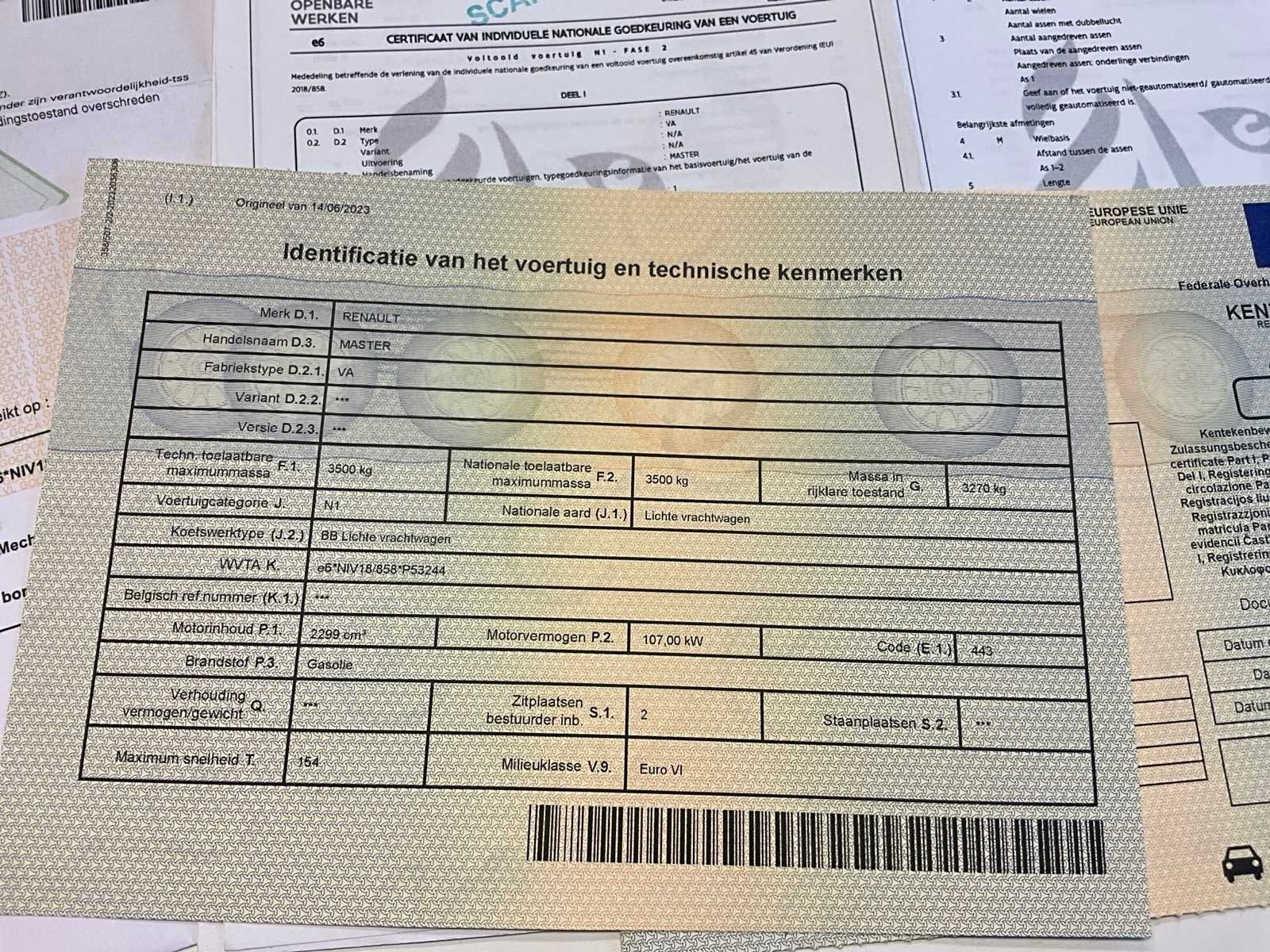 • MTM: 3500Kg • inschrijvingsbewijs: deel 1 en deel 2 aanwezig • COC: aanwezig • identificatieverslag: aanwezig Voorzien van hoogtewerker: • Klubb, K38P • bouwjaar: 2023 • werkhoogte: 11,8 meter • handleiding: aanwezig Opmerkingen: • carrosserie schade • gebruikssporen Merk: Renault Type: Master Chassisnummer: VF1VA000X70872617 Afgelezen kilometerstand: 53884km Cilinderinhoud: 2299cc Vermogen (kW): 107kW Brandstof: diesel Datum eerste inschrijving: 14/06/2023 Transmissie: Handgeschakeld Aantal zitplaatsen: 2 Nationaliteit documenten: B Aantal sleutels: 2 Ledig gewicht: 3371kg Emissieklasse: Euro 6 Boorddocumenten aanwezig?: true