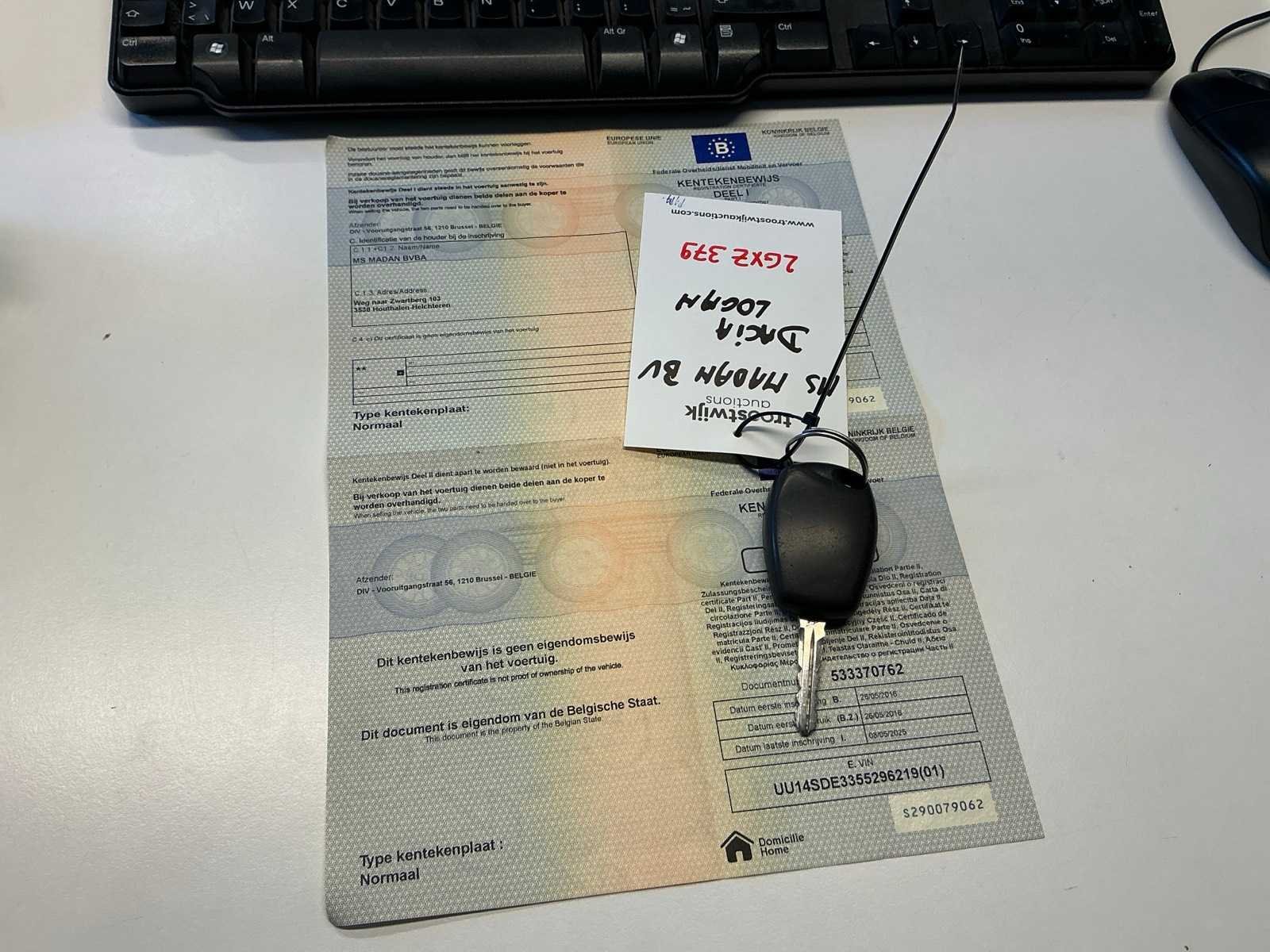 Gelijkvormigheidsattest niet aanwezig Merk: Dacia Model: Logan Afgelezen kilometerstand: 219058km Cilinderinhoud: 1149cc Vermogen (kW): 54kW Brandstof: benzine Chassisnummer: Uu14SDE3355296219 Datum eerste toelating: 25/05/2016 Aantal zitplaatsen: 5 Transmissie: Handgeschakeld Emissieklasse: Euro 6b Aantal sleutels: 1 Carrosserie: Sedan Nationaliteit documenten: B Zichtbare schade: gebruikssporen, schade rondom Inschrijvingsbewijs - deel 1 : Aanwezig Inschrijvingsbewijs - deel 2: Aanwezig