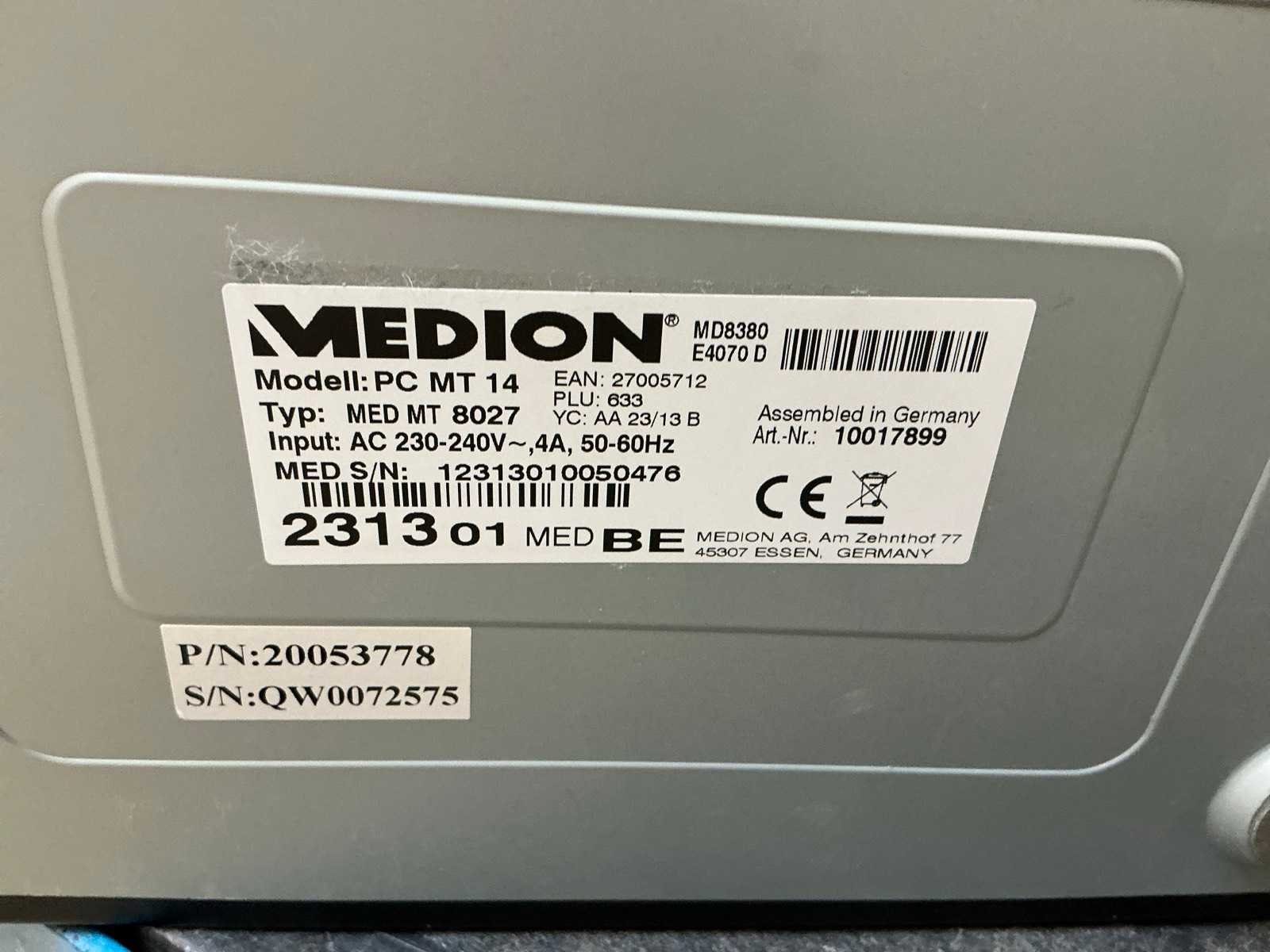 Bestaande uit desktop type Med mt 8027, monitor type MD20329BE, toetsenbord en luidsprekers. Merk: Medion