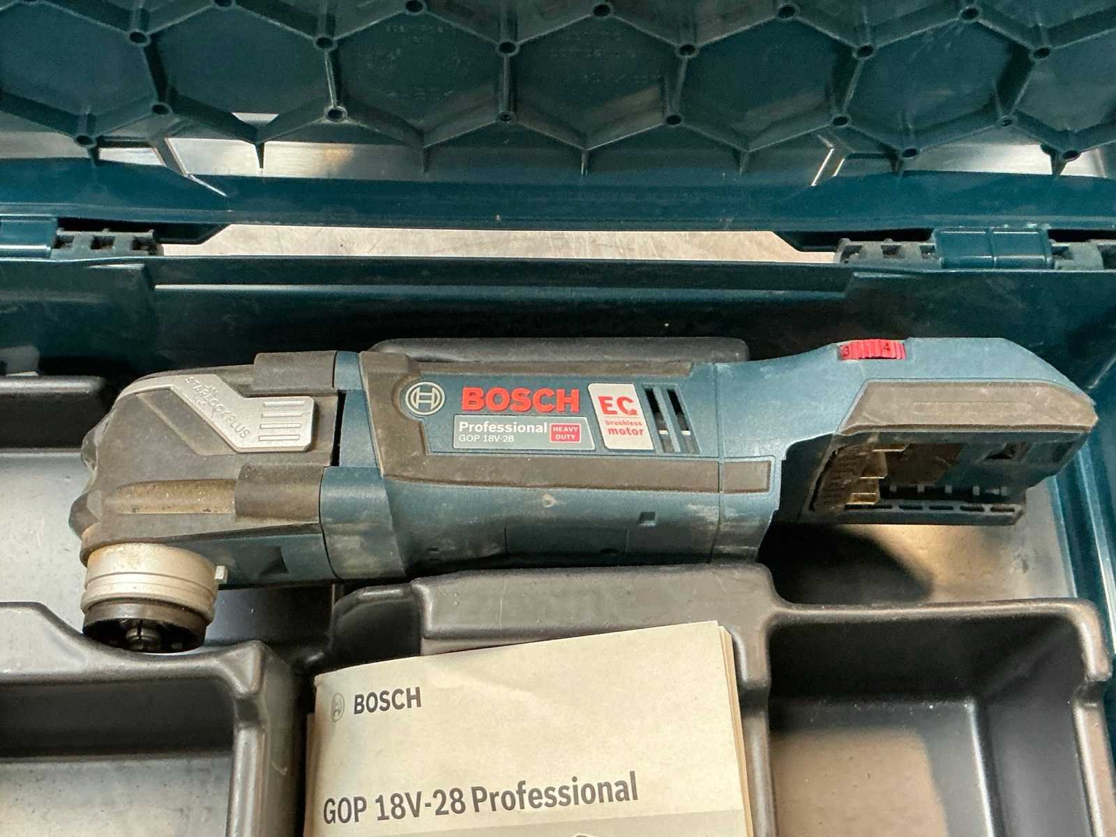 Zijnde cirkelzaagmachine type GKS18V-57G met 1accu zonder acculader, multitool type GOP18V-28 met koffer zonder accu en zonder acculader, en cirkelzaag type GKS12V-26 met koffer zonder accu en zonder acculader. Merk: Bosch