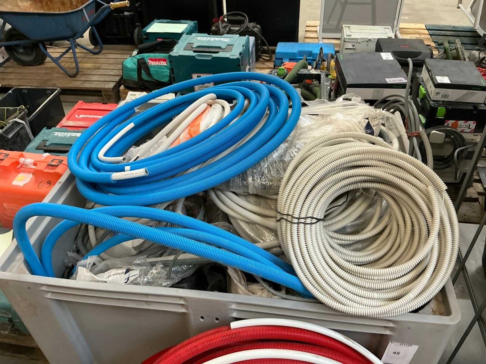 Waaronder elektra kabels, wachtbuizen, meerlagenbuis, afdekzeil,… inclusief kunststof bak.
