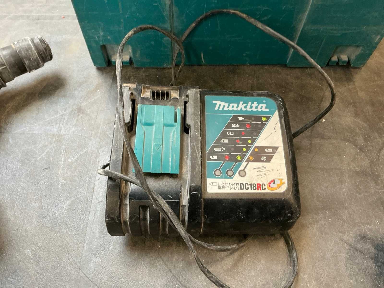 Bestaande uit klopboormachine type DHR243 en haakse slijper type DGA506. Totaal met 1 accu en 1 acculader. Merk: Makita Met koffer: true