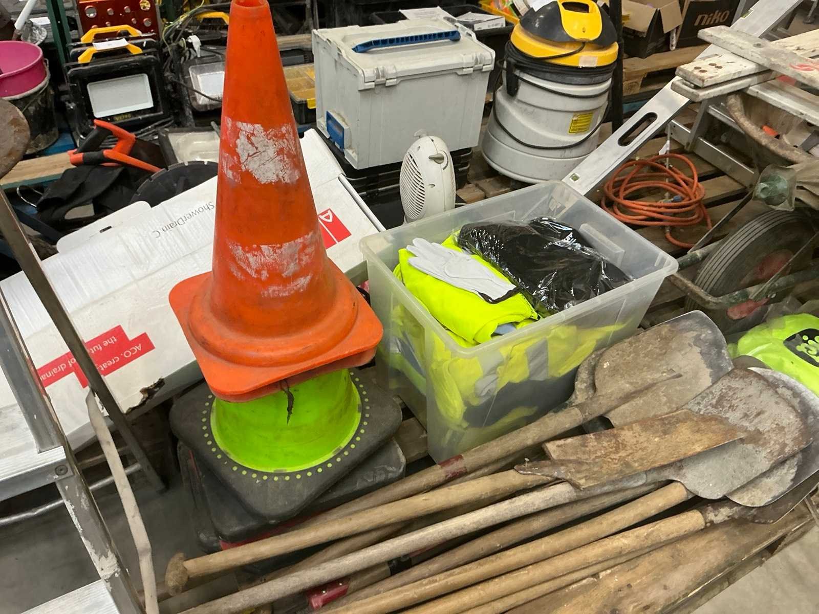 Waaronder kruiwagen, jerrycans, EHBO-kist, werkkleding, steelgereedschappen, trapladder, veiligheidskegels, ….