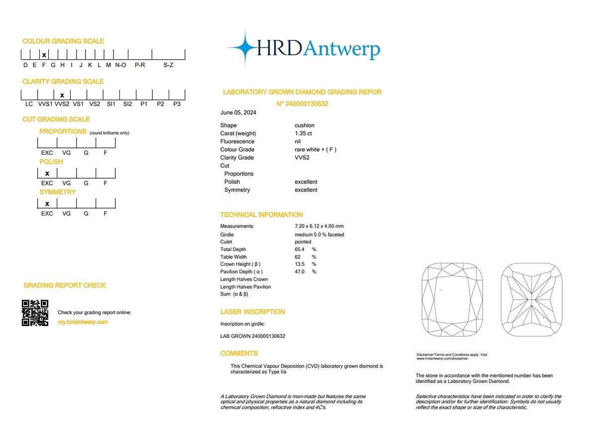 Cushion diamant 1.35ct – f/vvs2 – hrd