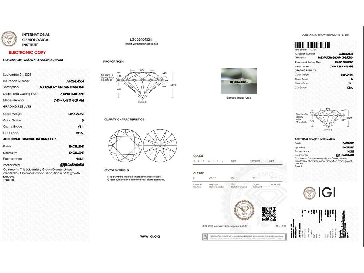 Alle diamanten hebben een gegraveerde laser-inscriptie. De kwaliteit is overgenomen uit het bijhorende certificaat. Within 3 days Datering: 21-09-2024 Karaat: 1.58 Certificaat: LG652404534 - IGI Voornaamste diamant: Labgrown Diamant (CVD) Kleur diamant: D Slijpvorm diamant: Round Slijpkwaliteit diamant: Ideal Zuiverheidsgraad diamant: VS1 Leveringsvoorwaarden: Per koerier