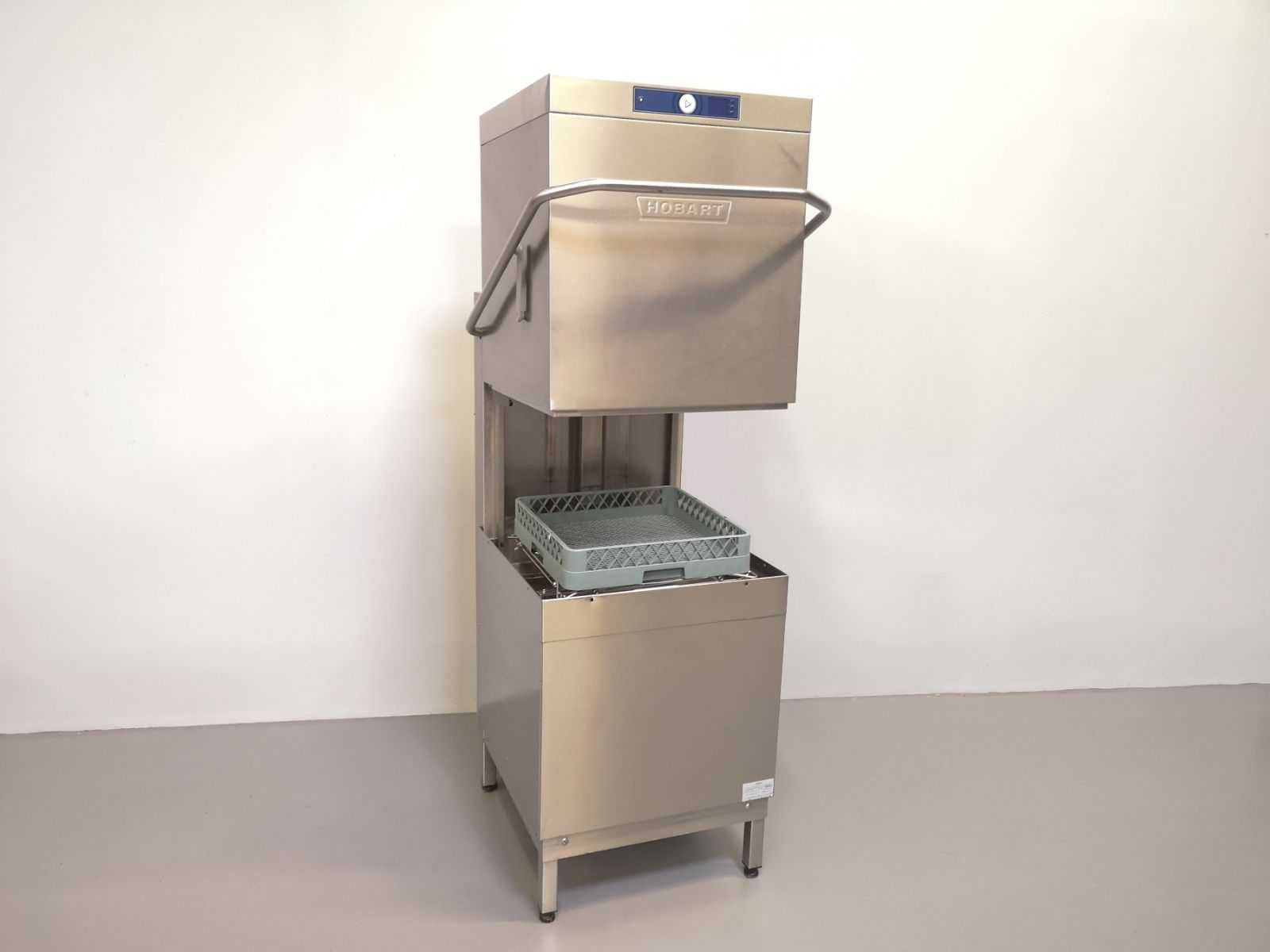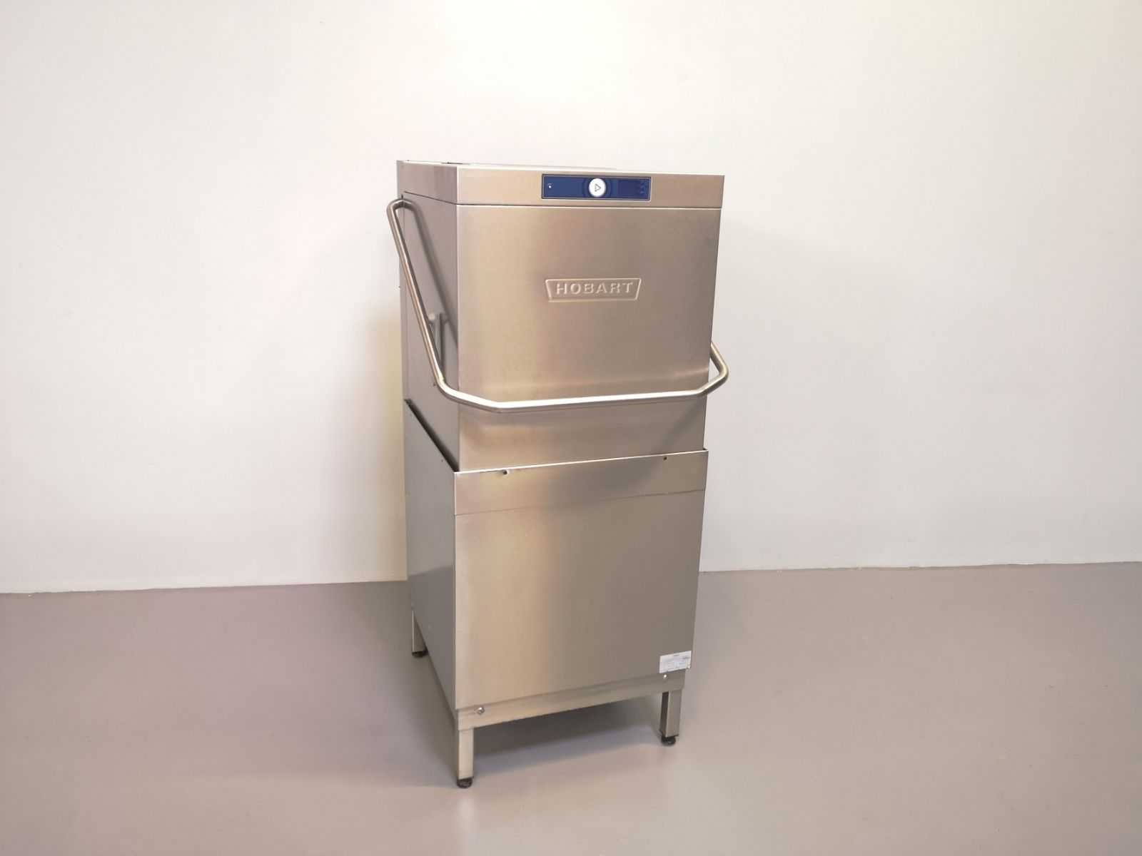Kaptype, roestvrijstalen constructie, grote capaciteit, doorlopende glas/vaatwasser. 380V Merk: Hobart Model: AMXS-10A Spanning: 380V Lengte: 70cm Breedte: 80cm Hoogte: 155cm