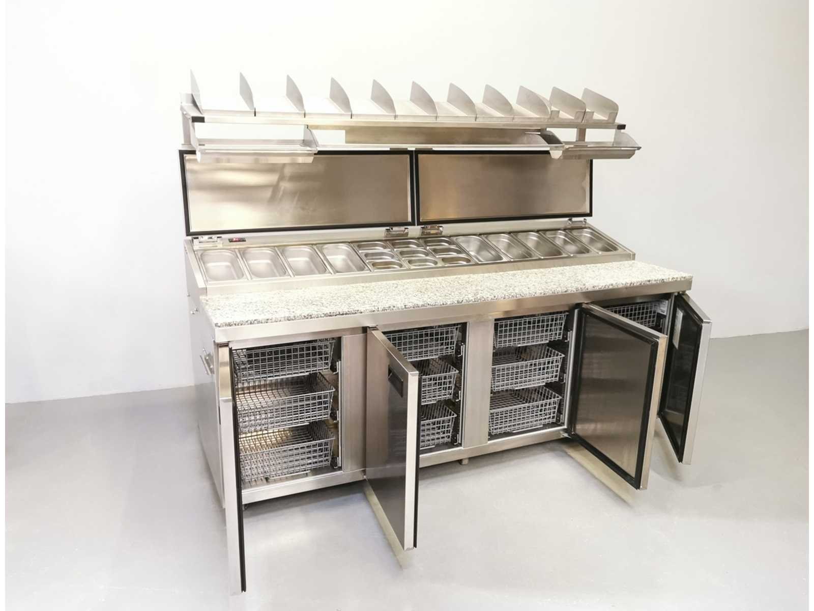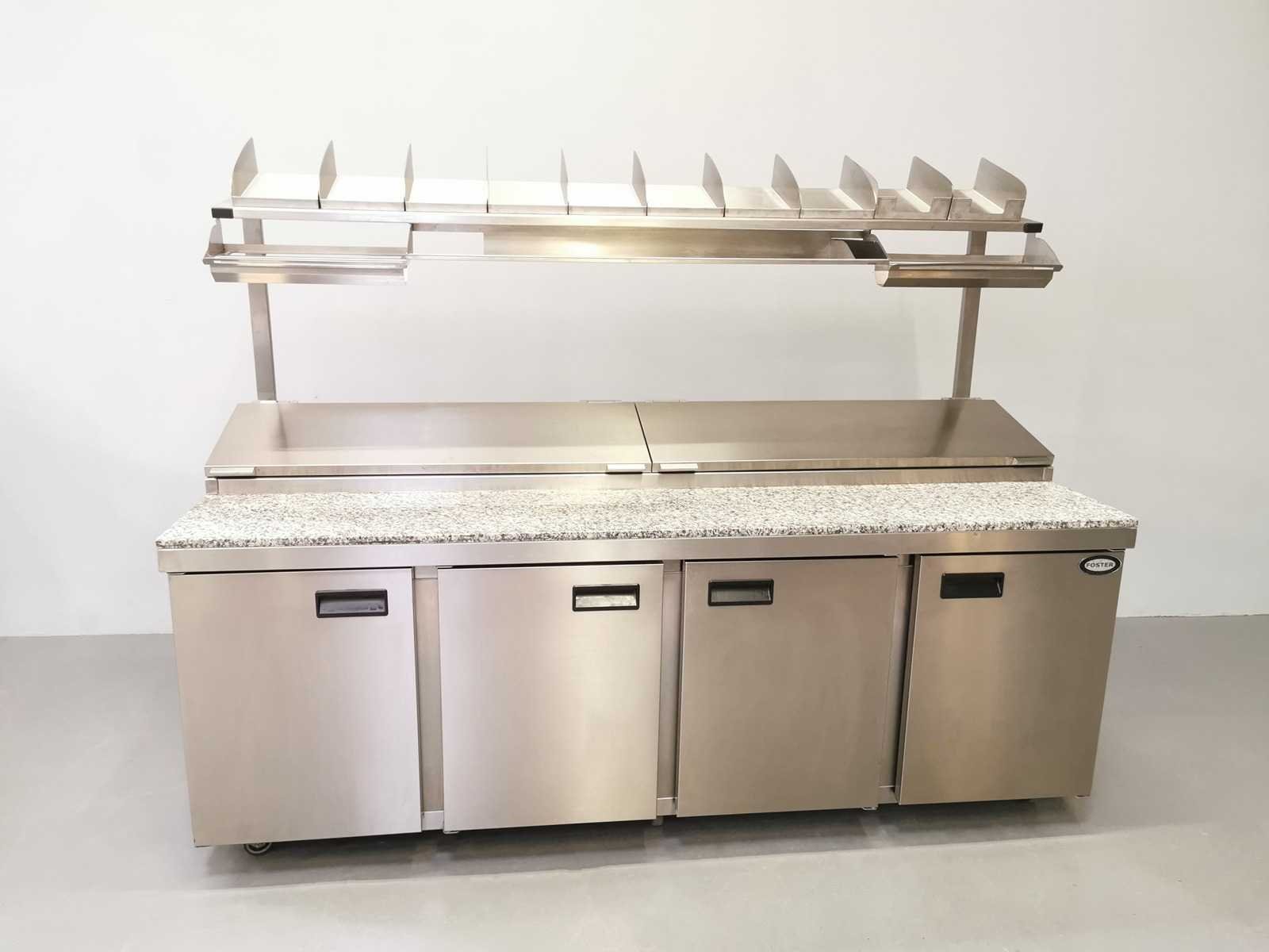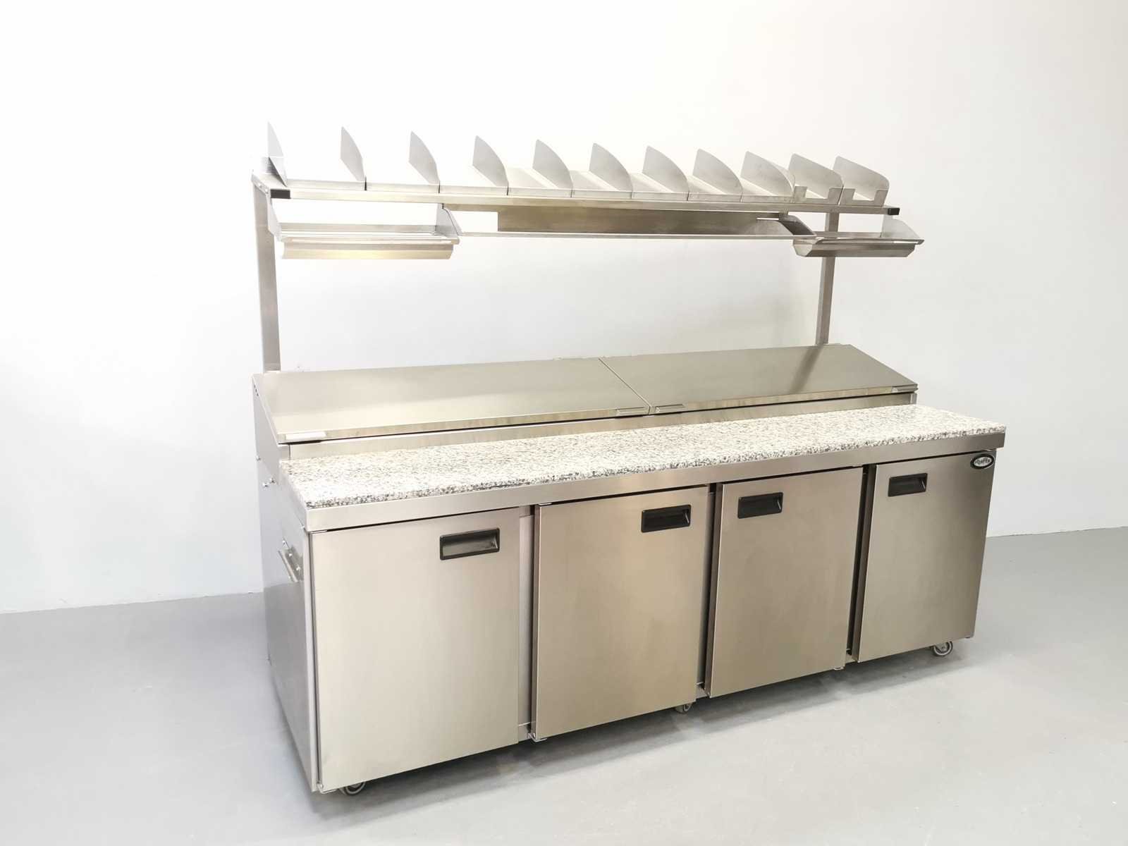 Uitgerust met roestvrijstalen schalen, een marmeren aanrechtblad, bovenste plank en bovenste opbergruimte Merk: Foster Type: FPS4GR Totale afmeting L: 230cm Totale afmeting Breedte: 85cm Totale afmeting Hoogte: 165cm Digitale uitlezing: true Ingebouwde koelcompressor: true Rvs: true Capaciteit.: 570l Aansluiting: 230V Mobiel: true