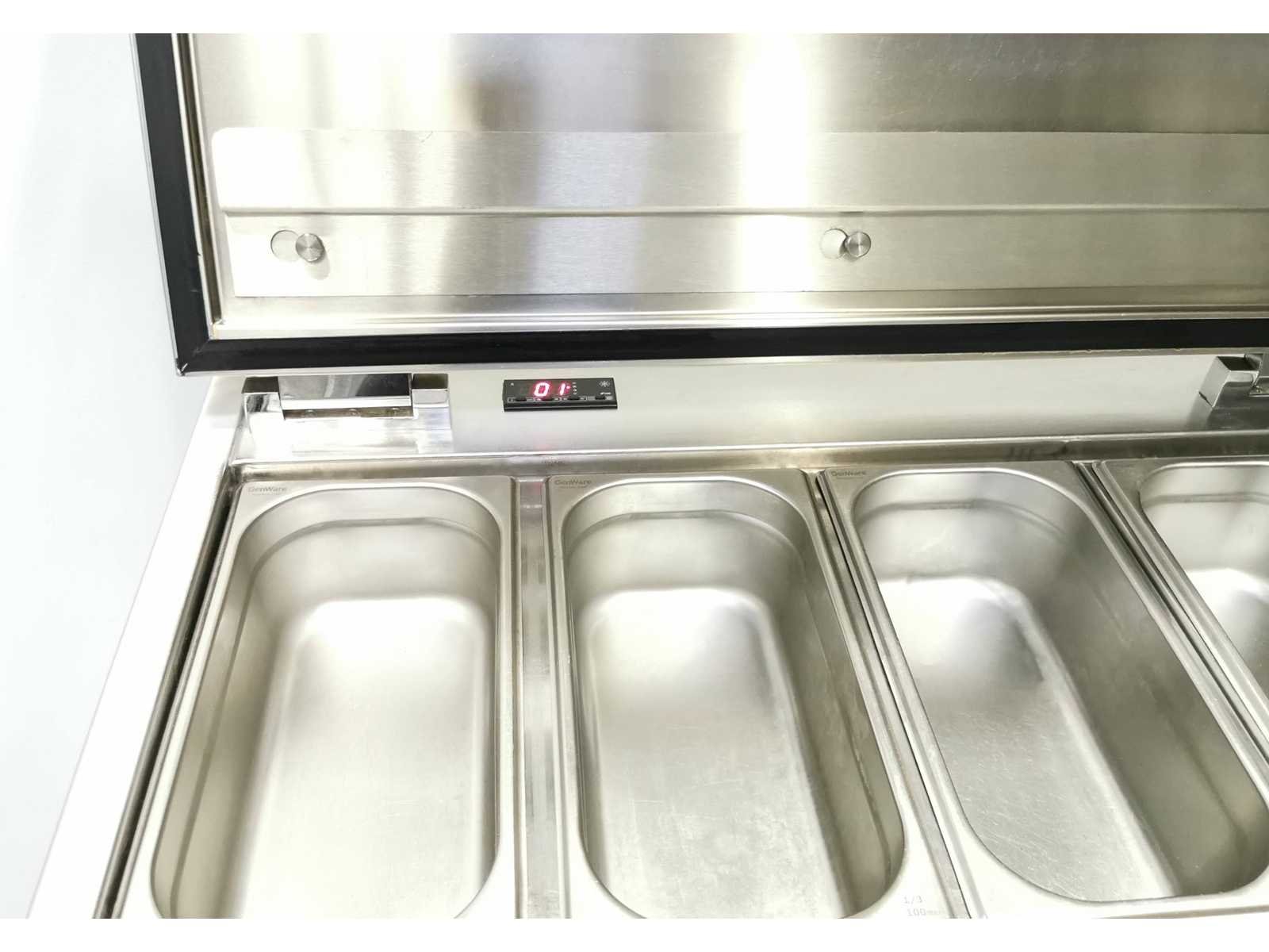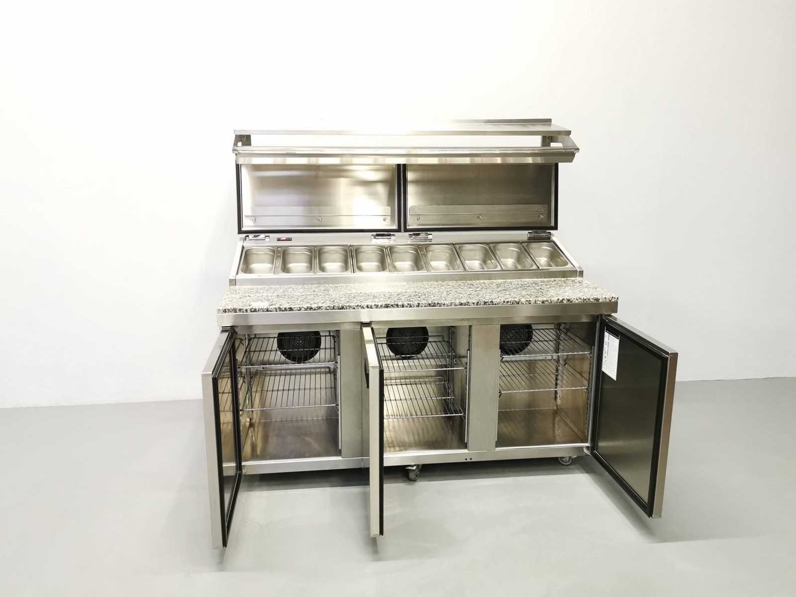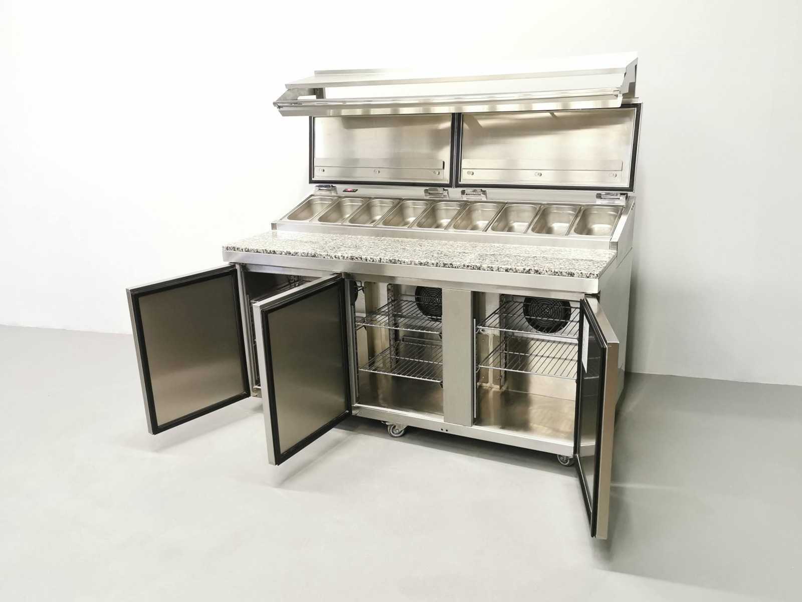 Uitgerust met roestvrijstalen schalen, een marmeren aanrechtblad, bovenste plank en bovenste opbergruimte Merk: Foster Type: FPS3GR Totale afmeting L: 173cm Totale afmeting Breedte: 85cm Totale afmeting Hoogte: 165cm Digitale uitlezing: true Ingebouwde koelcompressor: true Rvs: true Aansluiting: 230V Mobiel: true