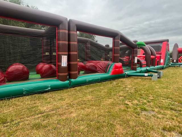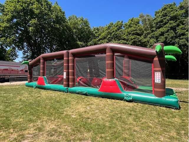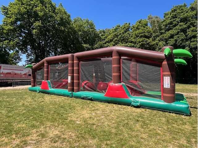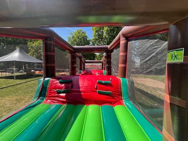 Hindernisbaan stepping stones van 14m, bestaat uit twee delen. Is een maatwerk, kan je koppelen met nog andere delen zoals de klimkooi, de bocht enzo... zodat je een lange en leuke hindernisbaan krijgt. 2 jaar oud en in goede staat, kan nog jaren mee. Nieuwprijs was 5800euro excl btw. Maatwerk! zeer goed en mooi materiaal Incl 2 blowers Merk: JB INFLATBLE Model: ATTRACTIE Gewicht: 300kg Lengte: 1400cm Breedte: 400cm Hoogte: 400cm