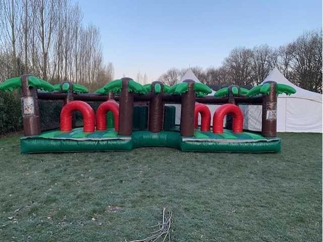 Hindernisbaan bocht 9m, kan je aan beide zijde kopelen zodat je u hindernisbaan naast elkaar kan zetten. Je kan deze ook los verhuren, zeer populair. Is een maatwerk, kan je koppelen met nog andere delen zoals de klimkooi, de Stepping stones enzo... zodat je een lange en leuke hindernisbaan krijgt. 2 jaar oud en in goede staat, kan nog jaren mee. Nieuwprijs was 2800euro excl btw. Maatwerk! zeer goed en mooi materiaal Incl 1 blower Merk: JB INFLATBLE Model: ATTRACTIE Gewicht: 300kg Lengte: 900cm Breedte: 400cm Hoogte: 400cm