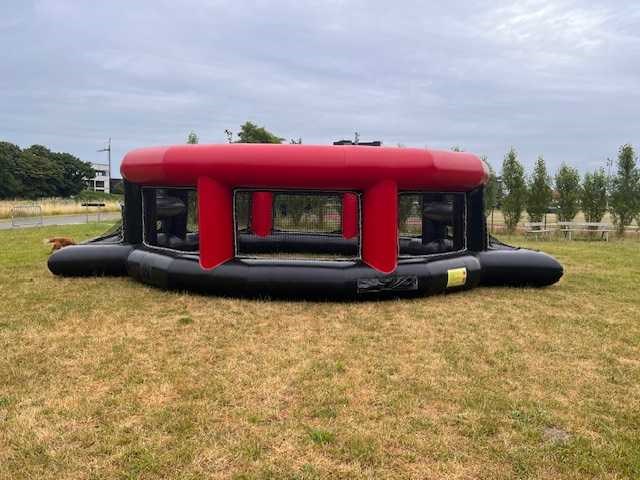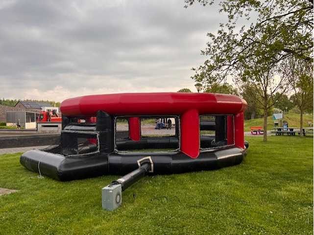Perfecte staat! Pannakooi / voetbalkooi Probeer de perfecte panna te scoren! Het zal echter niet meevallen om de bal tussen de benen van de tegenstander door te schieten om de bal vervolgens in bezit te houden. Lukt een panna niet? Dan kun je altijd nog in de doelen schieten om een punt te scoren. Erg leuk om één tegen één of in teamverband te spelen. De pannakooi is zo ingericht dat spelers de bal slim via de wanden kunnen rondspelen, zodat het de tegenstander moeite kost om de bal in bezit te krijgen. Geef gasten en bezoekers een echte uitdaging! Incl 1 blower Merk: JB INFLATBLE Model: ATTRACTIE Gewicht: 110kg Lengte: 920cm Breedte: 720cm Hoogte: 220cm