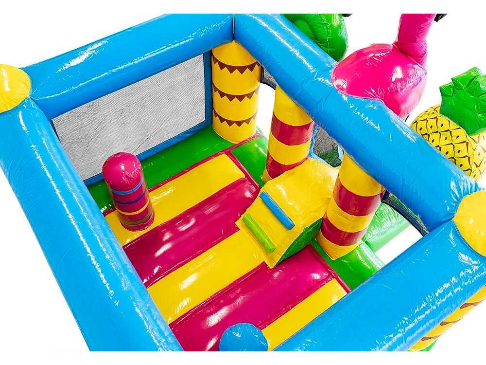 Goede staat, enkel een kleine herstelling nodig aan de glijbaan. Springkasteel is compact maar met een glijbaan, perfect formaat voor zowel indoor en outdoor. Incl 1 blower Merk: Boing Model: Springkasteel Gewicht: 50kg Lengte: 330cm Breedte: 310cm Hoogte: 300cm