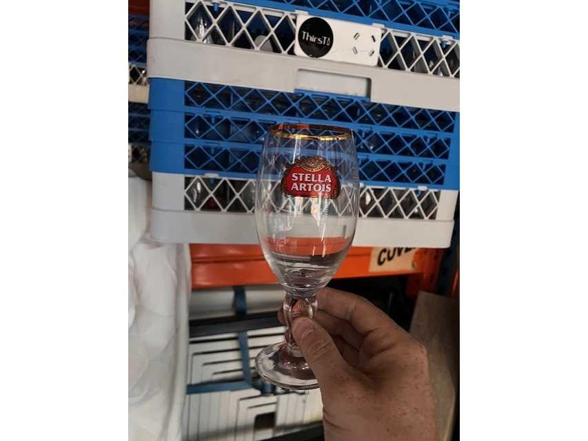 Bierglazen van Stella 75stuks In transportmanden Merk: Stella Kleur: Inox