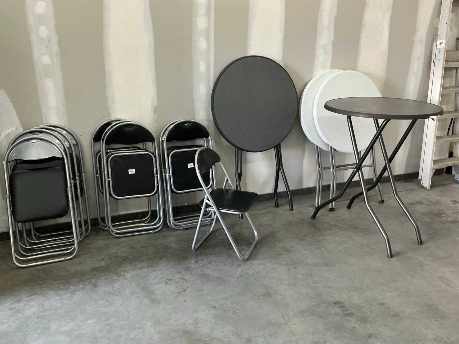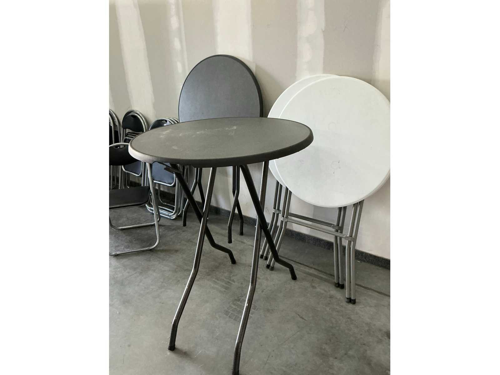 Waaronder dia 80cm en 85cm, Compleet met 11 opklapbare metalen stoelen LeenBakker, voorzien van kunstlederen bekleding