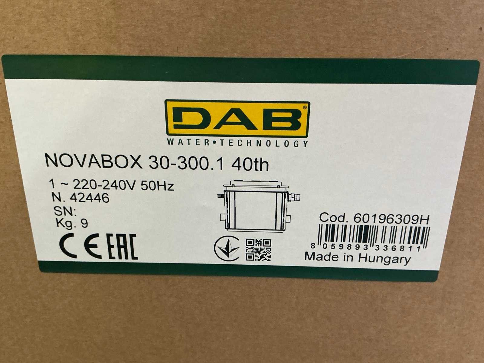 Liggende in gesloten originele verpakking Merk: Dab Type: Novabox 30-300 Aansluiting: 230V
