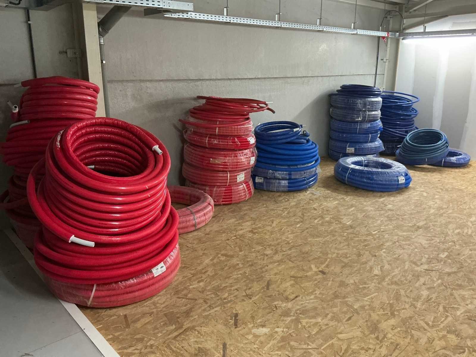 Waaronder 10 rollen Fränkische Profi-air Classic, 12 rollen APA rood en 16 rollen blauw, in diverse maten en uitvoeringen, Compleet met enige diversen op buitenterrein. Liggende op vlonder en deel op buitenterrein Afgifte volgens aanwijzing Product type: Partij