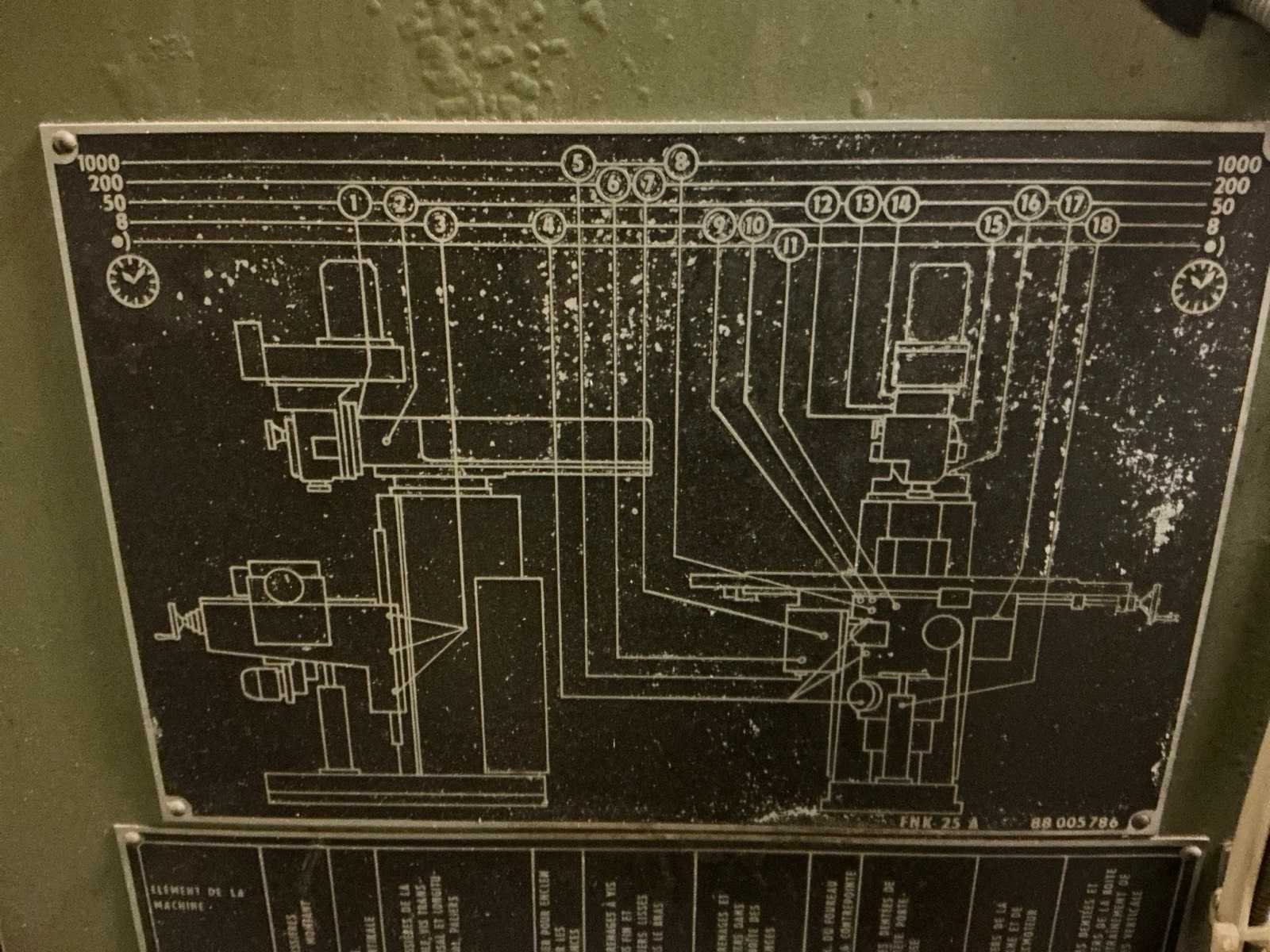 Merk: TOS KURIM Type: FNK 25 A Verplaatsing x-as: 1170mm Verplaatsing y-as: 750mm Verplaatsing z-as: 950mm T-gleuf opspantafelafmeting L: 1240mm T-gleuf opspantafelafmeting B: 250mm Koelmiddelpomp: true Motorvermogen (kW): 4kW Aansluiting: 380V Afmeting l: 1800mm Afmeting b: 1870mm Afmeting h: 2420mm