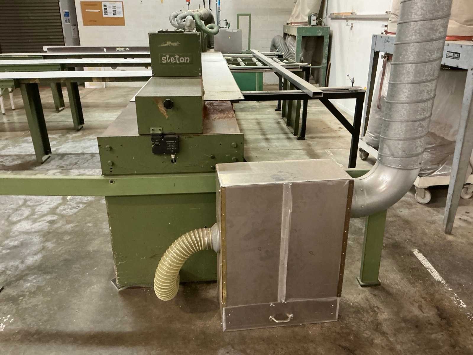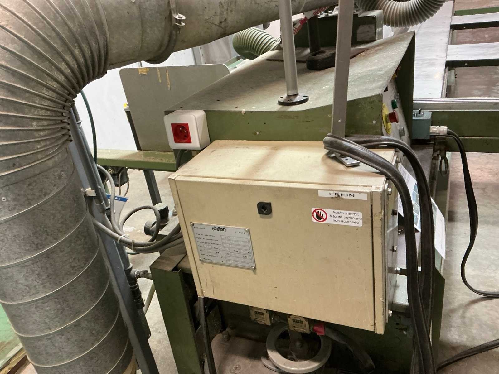 Inclusief dubbele stofafzuiging Merk: STETON Type: S 110 B Bouwjaar: 1982 Serienummer: 4801 20 Aansluiting: 380V Motorvermogen (kW): 10kW Zaaghoogte: 150mm Zaaglengte: 4200mm Totale afmeting L: 6350mm Totale afmeting Breedte: 4700mm Totale afmeting Hoogte: 1670mm