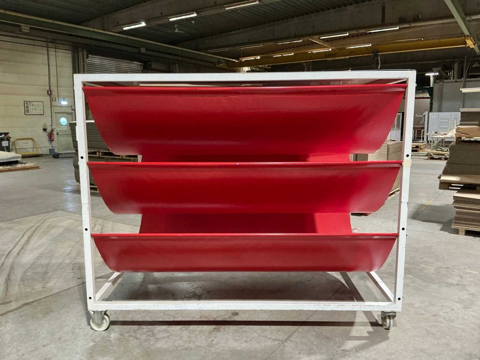 Voorzien van 2 vaste wielen en 2 zwenkwielen met rem; met 3x zeilplateau Totale afmeting L: 2450mm Totale afmeting Breedte: 1630mm Totale afmeting Hoogte: 1980mm