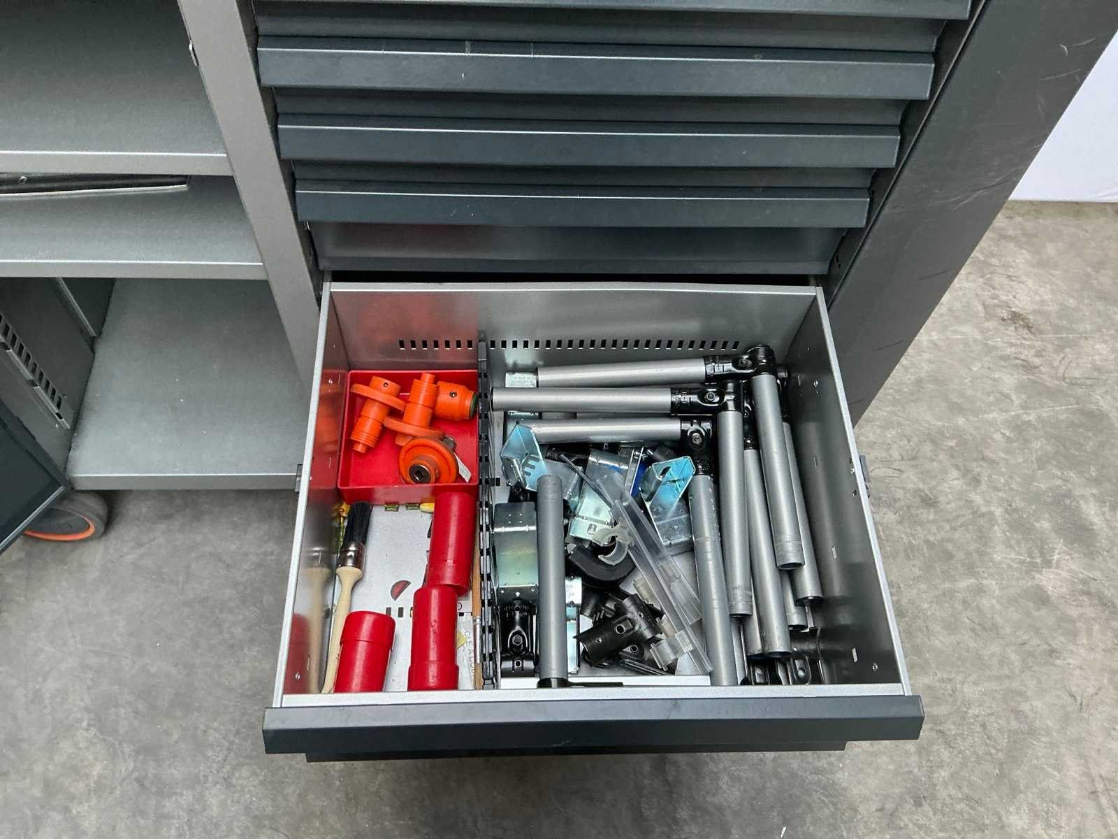 Met inhoud diverse handgereedschappen; voorzien van 4 wielen waarvan 2 zwenkwielen met rem Merk: Garant Type: 91 4560_6 Aantal laden: 6 Met inhoud: true Totale afmeting L: 1180mm Totale afmeting Breedte: 500mm Totale afmeting Hoogte: 1000mm