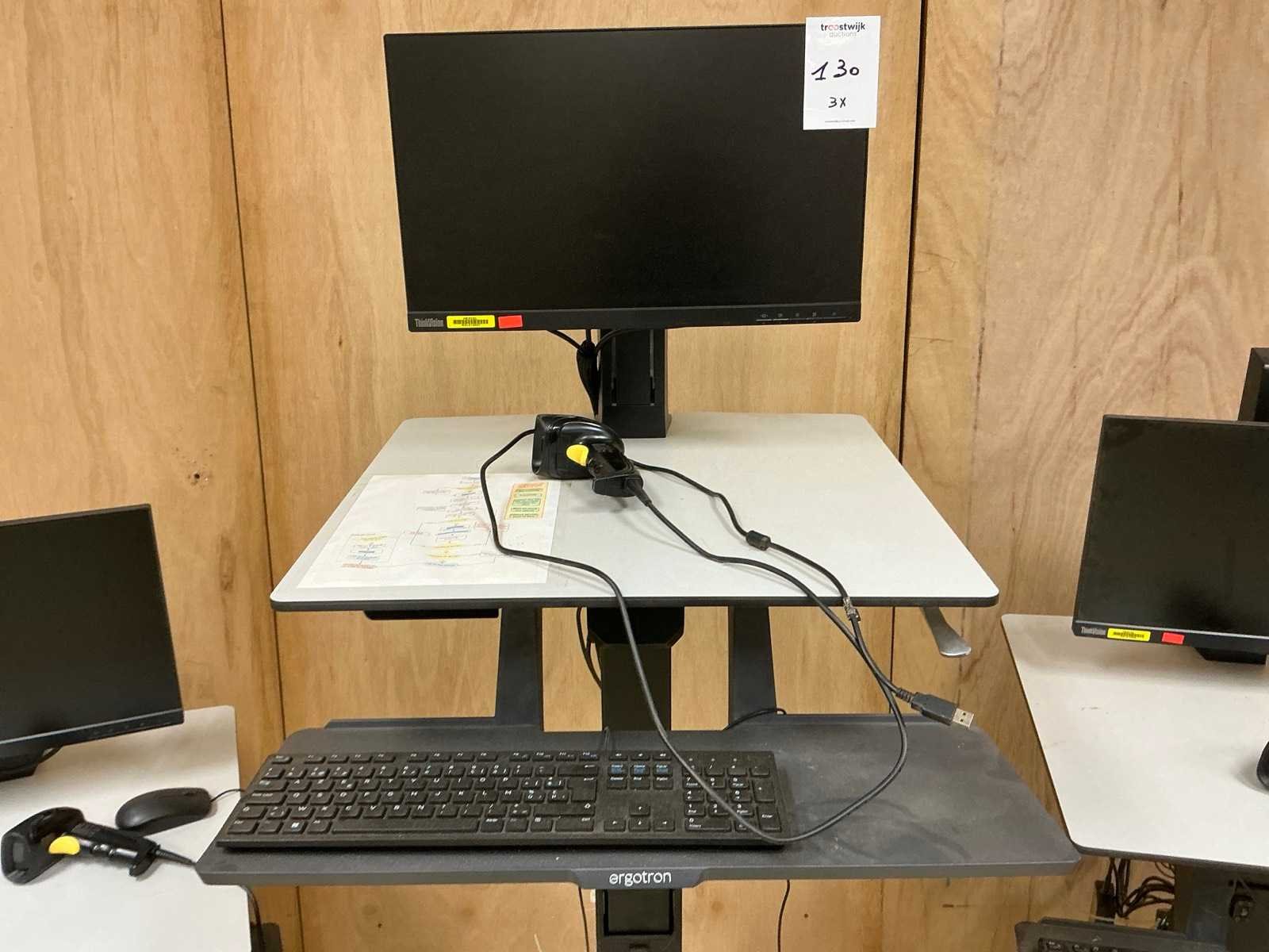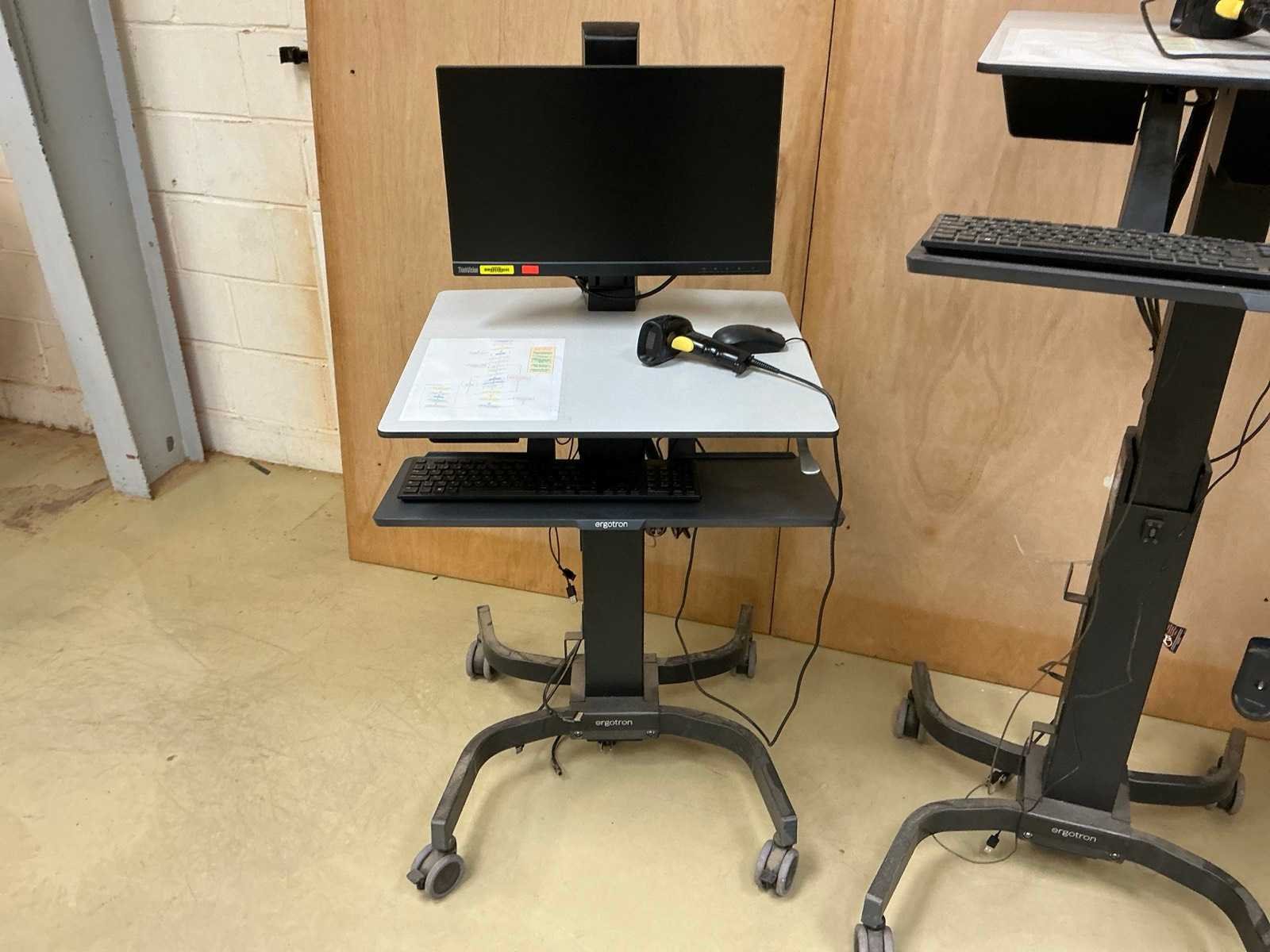 Verstelbaar in hoogte van 95 tot 130cm werkbladhoogte; toestenbord is schuifbaar en voorzien van Azerty toetsenbord met muis, handscanner Nedis BSCN2D1008K en Lenovo Thinkvision scherm T22i-20; voorzien van 4 zwenkwielen waarvan 2 met rem ; foto’s van andere soortgelijke kavel, kleine afwijkingen mogelijk Merk: ERGOTRON Kleur: Zwart Lengte: 61cm Breedte: 58cm Hoogte: 130cm