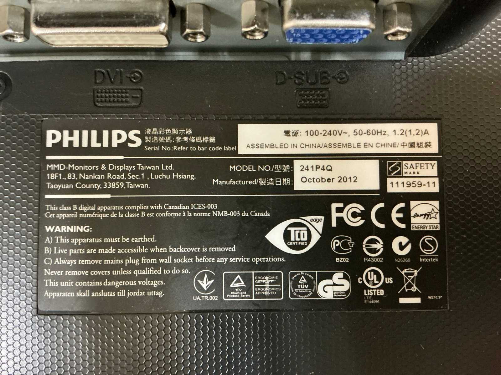 Scherm kantelbaar en in hoogte verstelbaar Merk: PHILIPS Model: AMVA LED Type: 241P4Q Kleur: Grijs Lengte: 57cm Breedte: 22cm Hoogte: 40cm