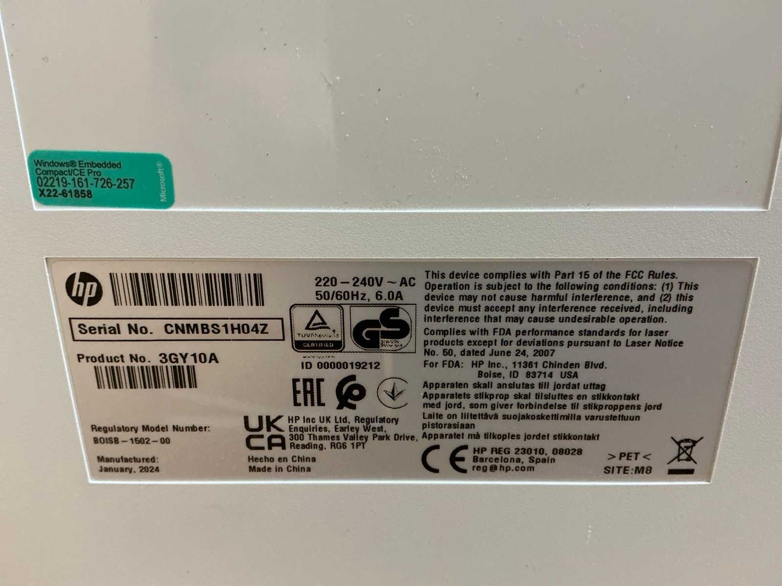 Merk: HP Model: Laser Jet Managed E60165 Max. scan format: A4 Aantal of cartridges: 4 Kleur: Wit met zwart Lengte: 43cm Breedte: 47cm Hoogte: 38cm Met voedingskabel: true