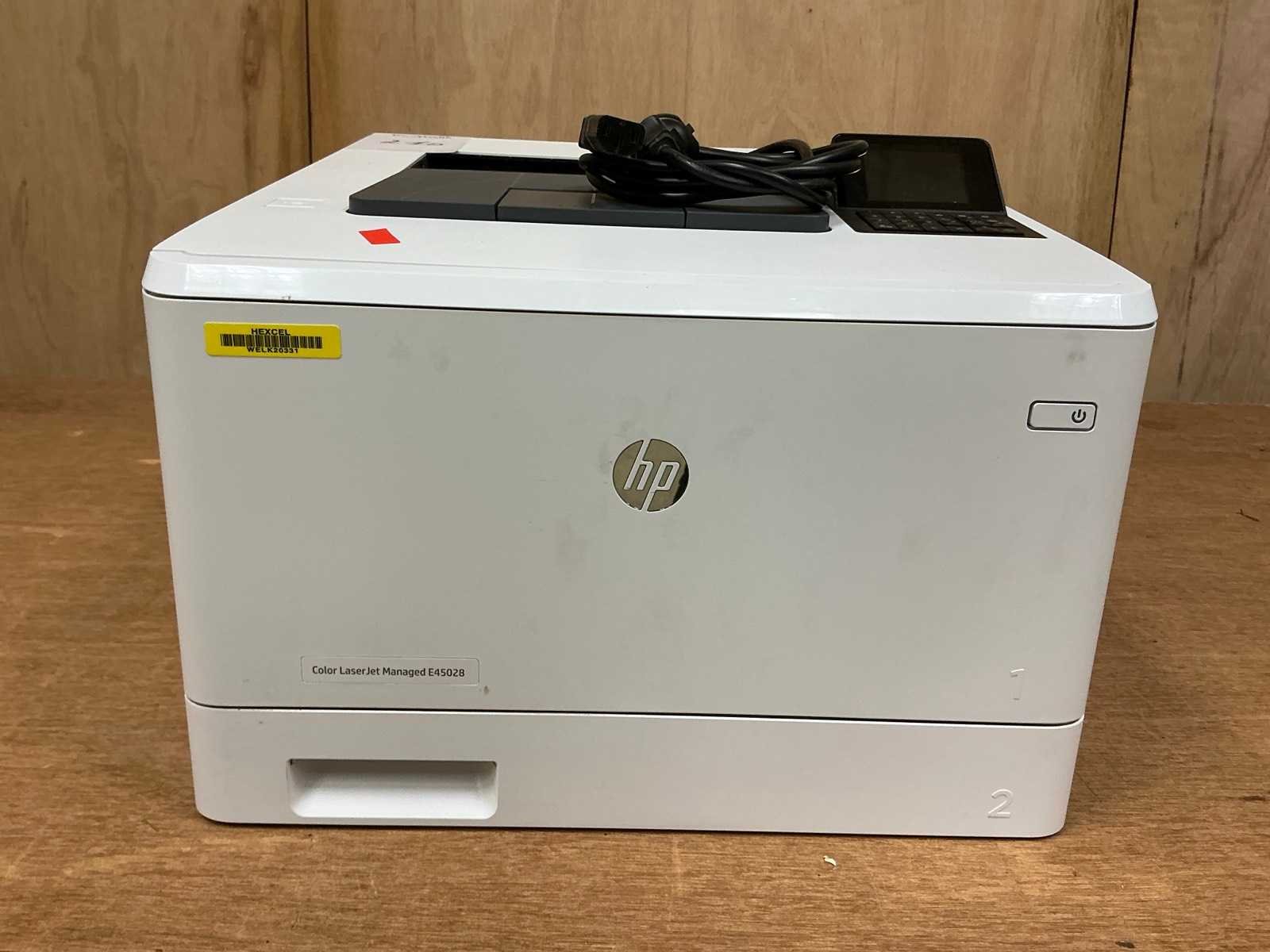 Merk: HP Model: E45028 Product type: Color laserJet Managed Max. scan format: A4 Aantal of cartridges: 4 Kleurenprinter: true Kleur: Wit Lengte: 47cm Breedte: 41cm Hoogte: 32cm Met voedingskabel: true