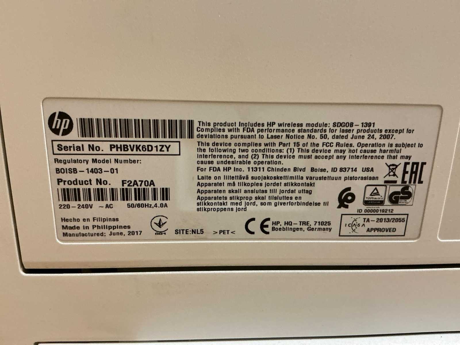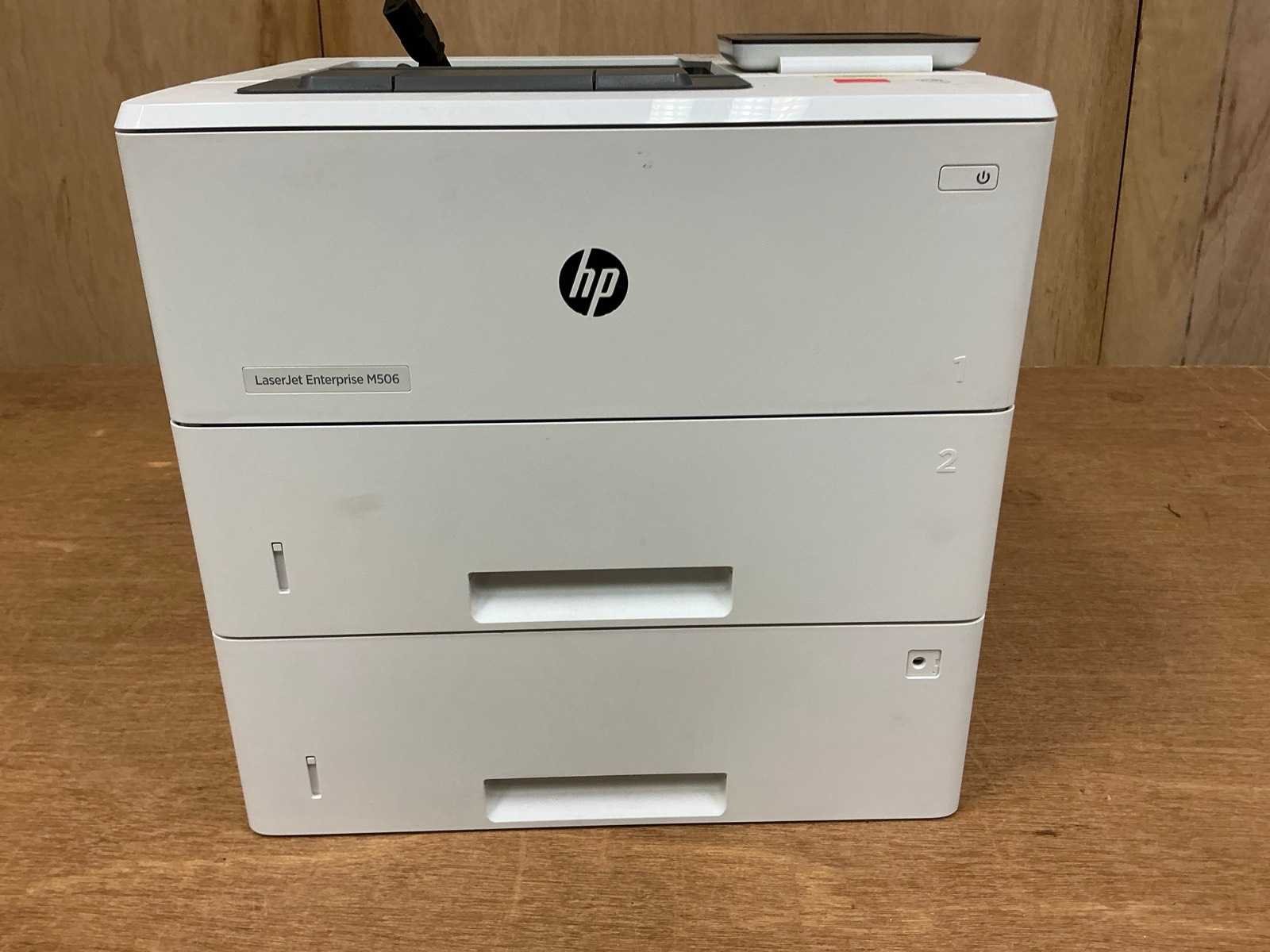 Merk: HP Model: LaserJet Enterprise M506 Max. scan format: A4 Aantal of cartridges: 4 Kleur: Wit met zwart Lengte: 41cm Breedte: 36cm Hoogte: 41cm Met voedingskabel: true