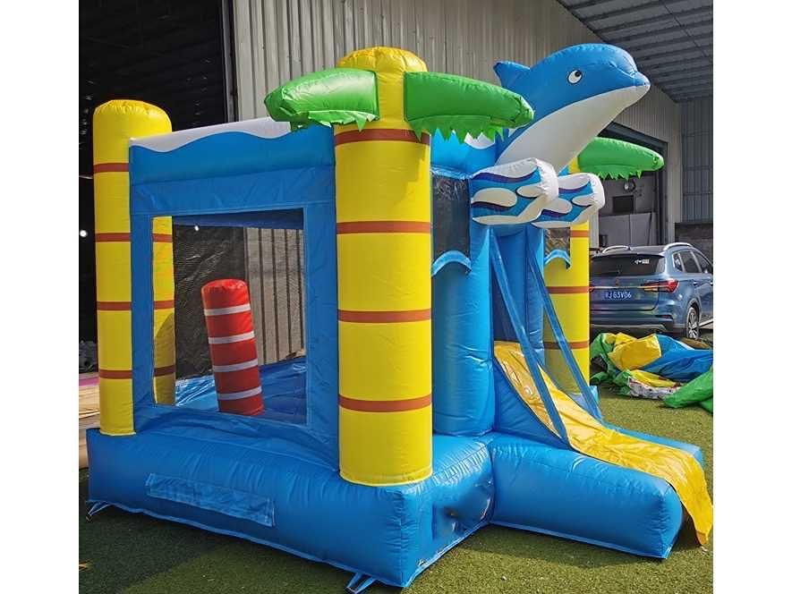 Dolfijn mini springkasteel Model: Multiplay Product type: unicorn Gewicht: 120kg Lengte: 300cm Breedte: 350cm Hoogte: 200cm