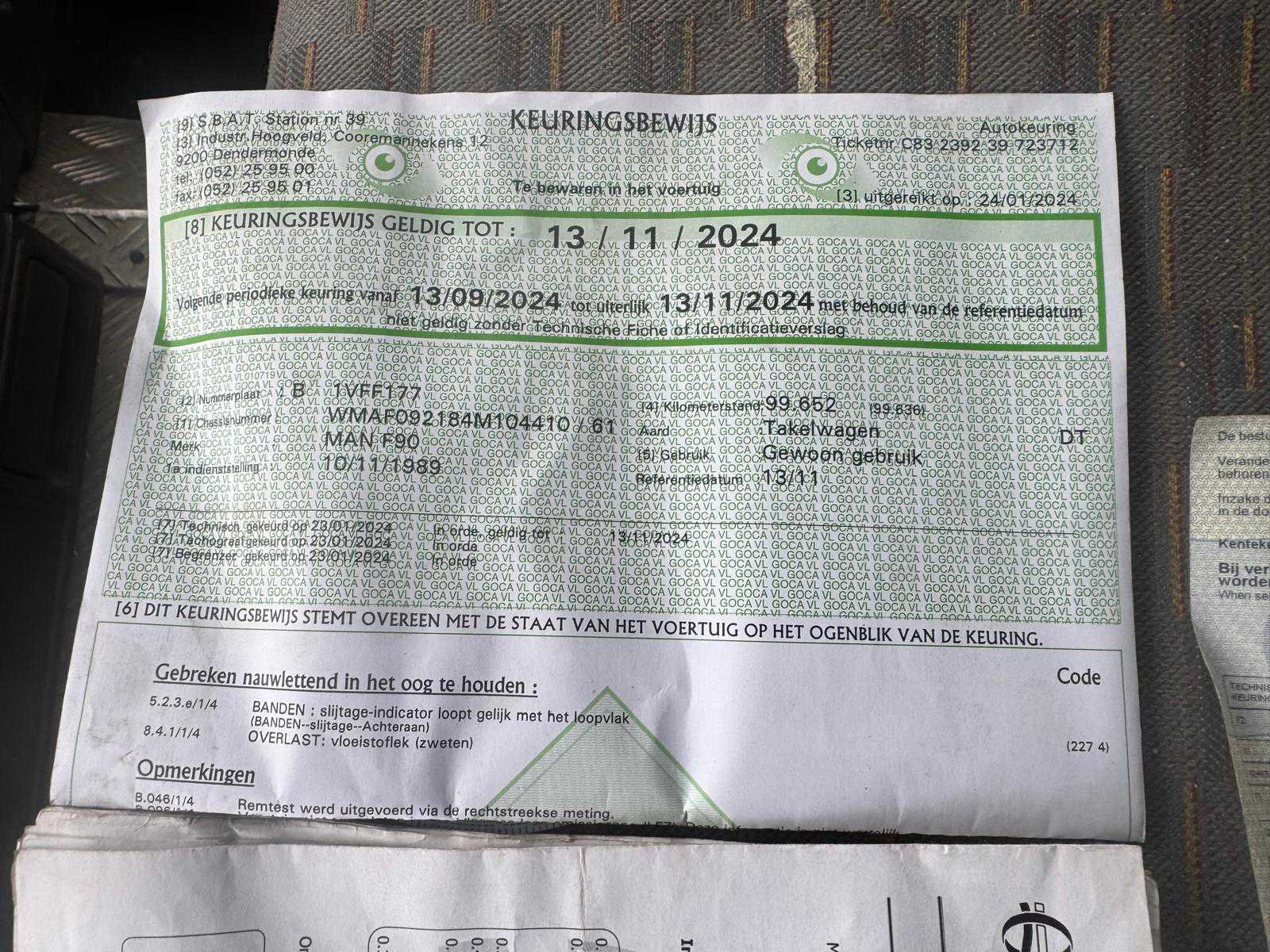 Aangedreven door V10 dieselmotor/ voorzien van Jacobs/Jige type megacity 21/ voorzien van 2x 15 ton lieren/ alle benodigdheden waaronder vorkbril/ uitschuifbare lichtmast/ hydraulische hydrogroep/ luchtcompressor/ starthulpsysteem/ vv opslagtank met pompfunctie/ diverse handgereedschappen/ in 2018 is voertuig volledig gereviseerd en herschilderd Merk: MAN Type: F90 Chassisnummer VIN: WMAF092184M104410 Datum eerste toelating: 10/11/1989 Aantal assen: 3 Asconfiguratie: 6x4 Laadvermogen: 26000kg Aantal sleutels: 1 Slaapcabine: true Afgelezen kilometerstand: 100095km Aantal zitplaatsen: 3