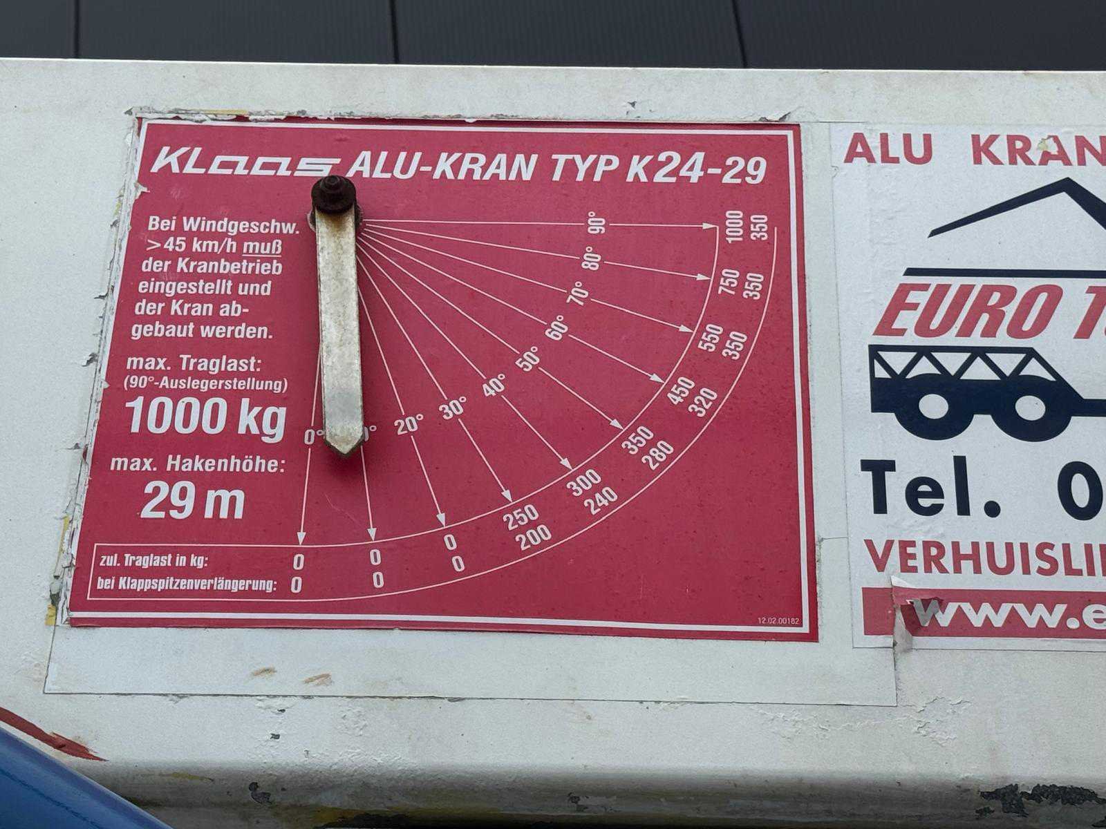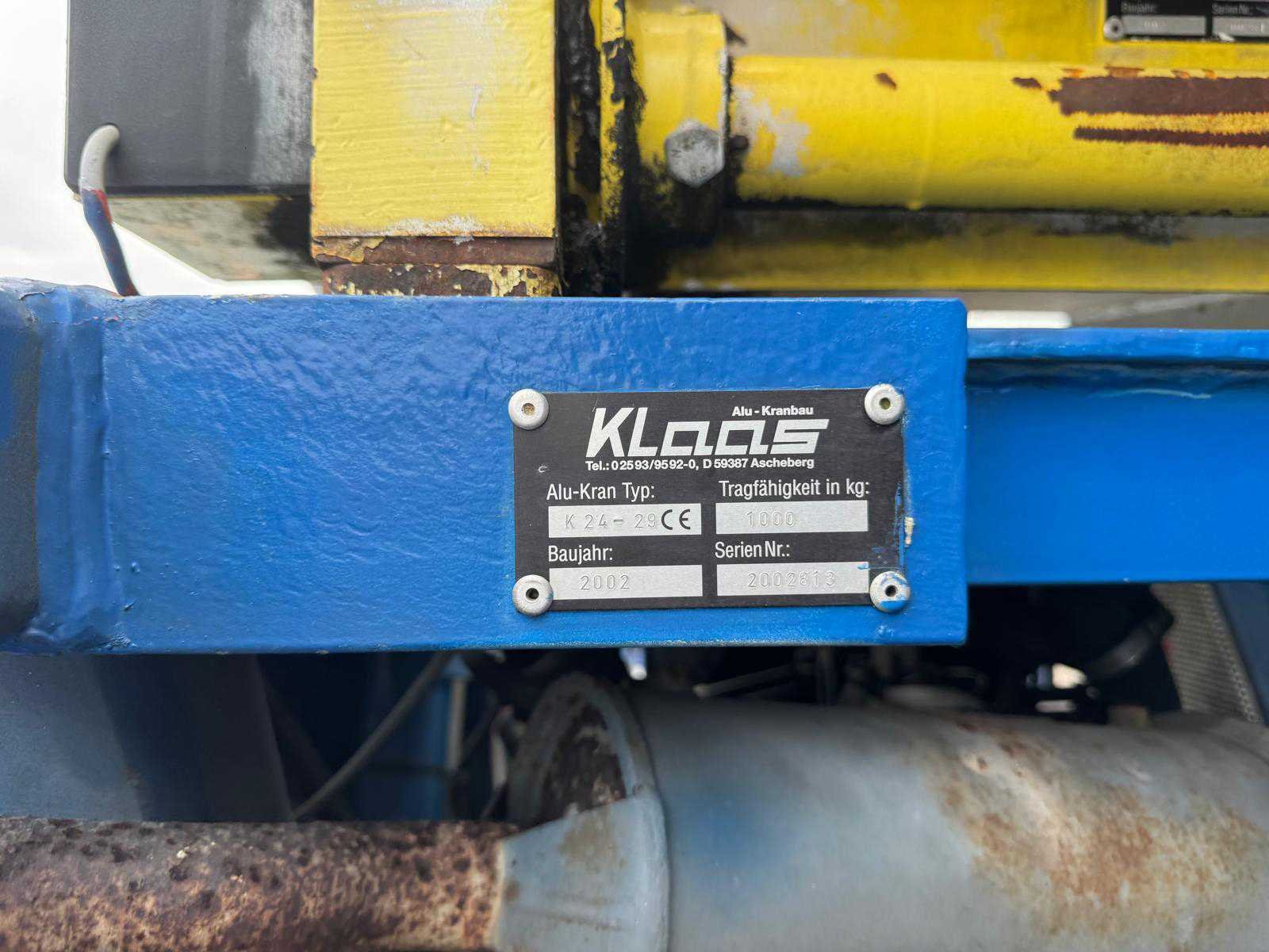 Voorzien van laadkraan Klaas type K24/29 , bouwjaar 2002/ reikweidte 29 meter/ 1000kg capaciteit/ werkuren: 2250 Merk: Renault Type: Midlum Chassisnummer VIN: VF642AEA000008689 Cilinderinhoud: 4116cc Kilometerstand bij opname: 256195km Datum eerste toelating: 26/07/2002 Aantal assen: 2 Asconfiguratie: 4x2 Laadvermogen: 9000kg Aantal sleutels: 1 Emissieklasse: Euro3 Laadkraan: true Kentekenpapieren compleet?: true Diesel: true