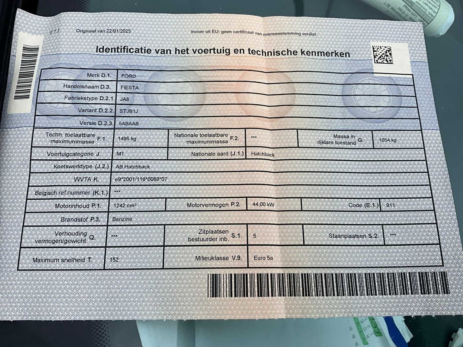 Deel 2 inschrijving ontbreekt Merk: Ford Model: Hatchback Type: Fietsta Bouwjaar: 2011 Afgelezen kilometerstand: 211782km Cilinderinhoud: 1242cc Vermogen (kW): 44kW Brandstof: benzine Chassisnummer: WFPJXXGAJJBE42515 Datum eerste toelating: 21-06-2011 Energielabel: Euro 5a Aantal zitplaatsen: 5 Transmissie: Handgeschakeld Stuurwiel: Links Aantal deuren: 5 Aantal sleutels: 1 Nationaliteit documenten: Belgische Gelijkvormigheidsattest aanwezig: true Inschrijvingsbewijs - deel 1 : Aanwezig Inschrijvingsbewijs - deel 2: Niet aanwezig