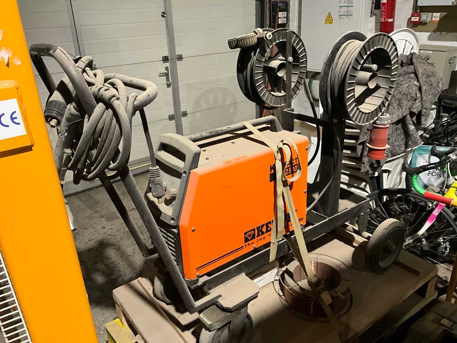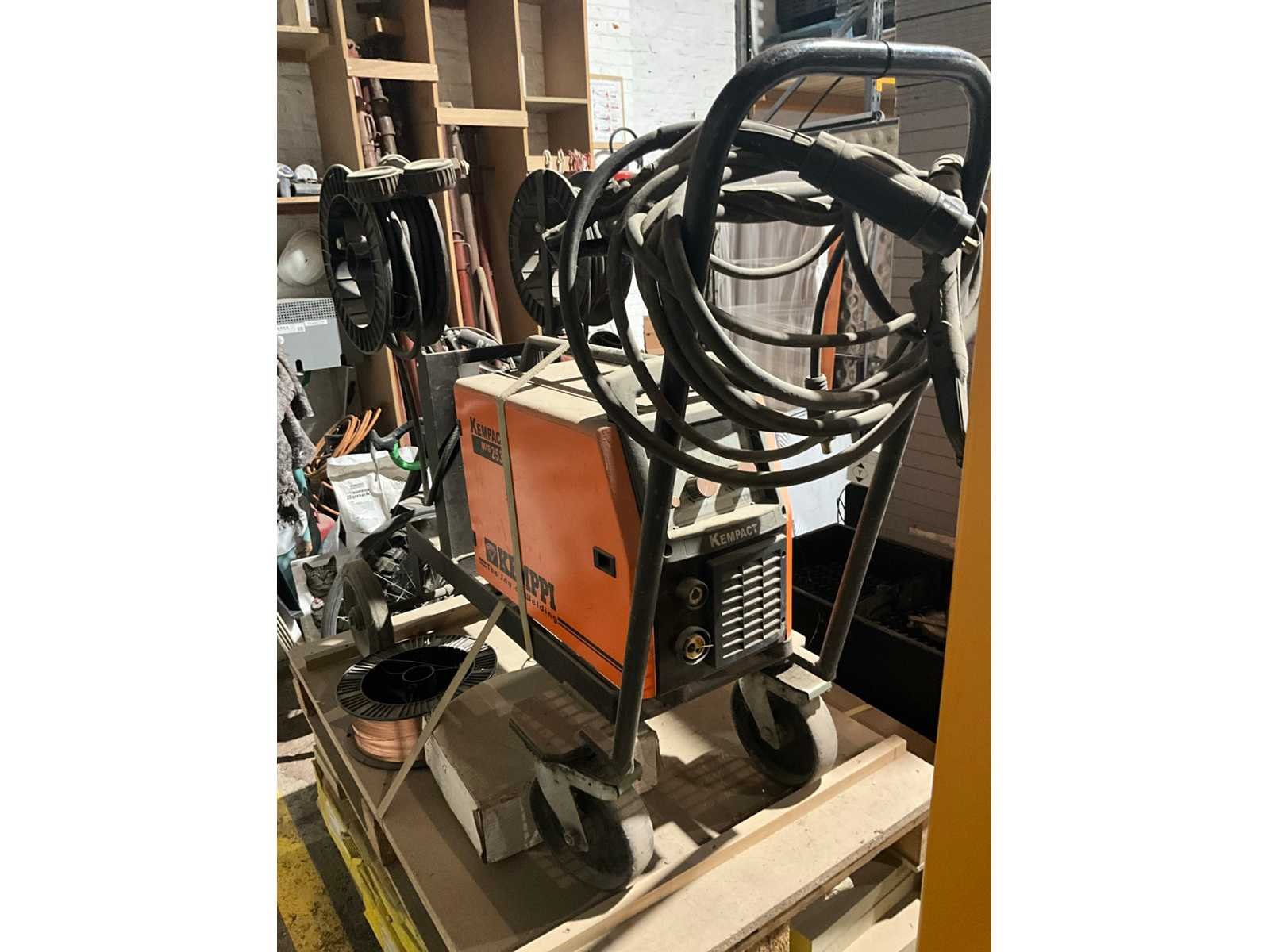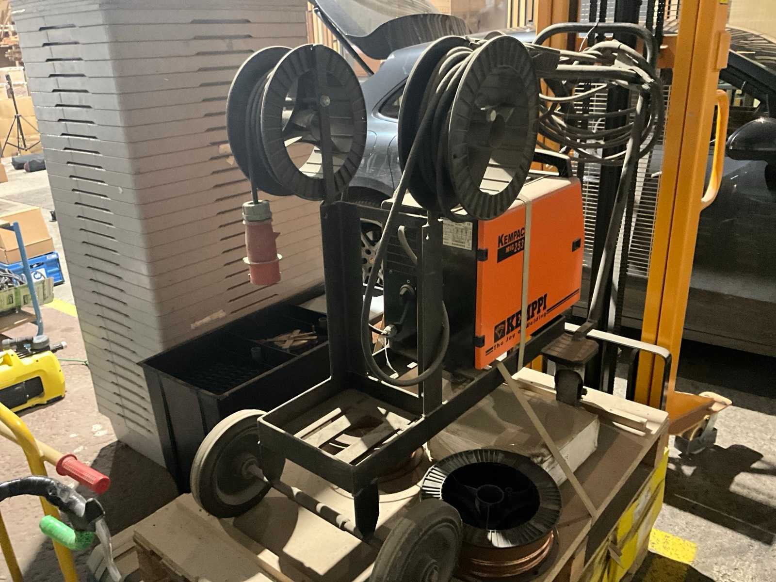 Op verrijdbaar onderstel, 3 lasrollen inbegrepen Merk: Kempi Type: Kempact Mig 2530 Serienummer: 621853001 Aansluiting: 400V