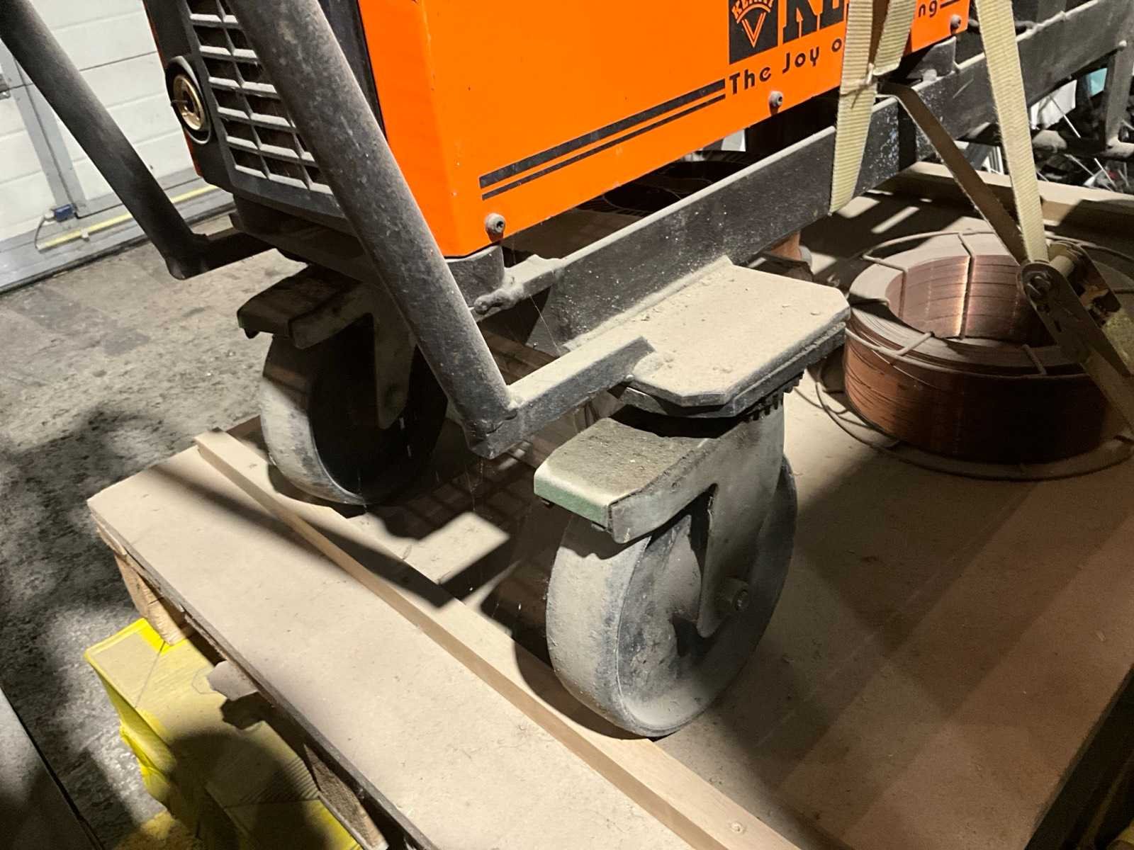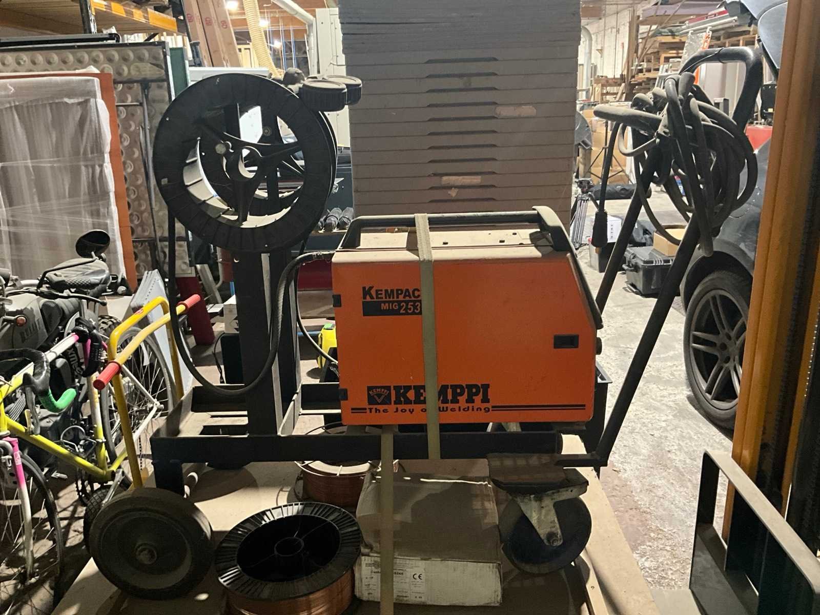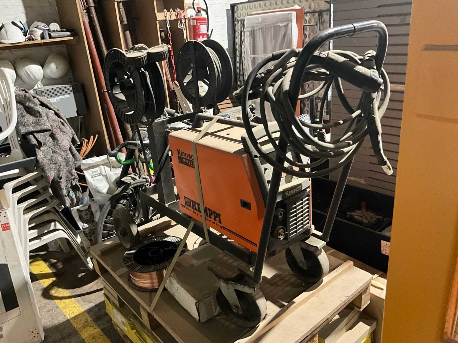 Op verrijdbaar onderstel, 3 lasrollen inbegrepen Merk: Kempi Type: Kempact Mig 2530 Serienummer: 621853001 Aansluiting: 400V