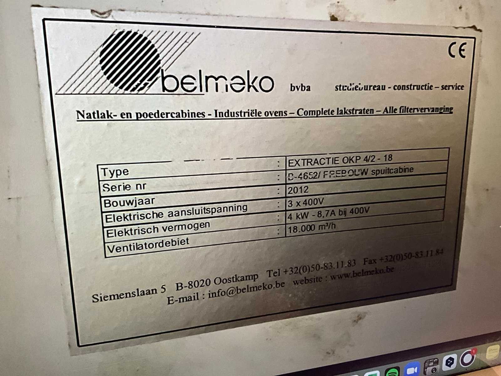 2012 belmeko extractie okp gedemonteerde verfspuitcabine