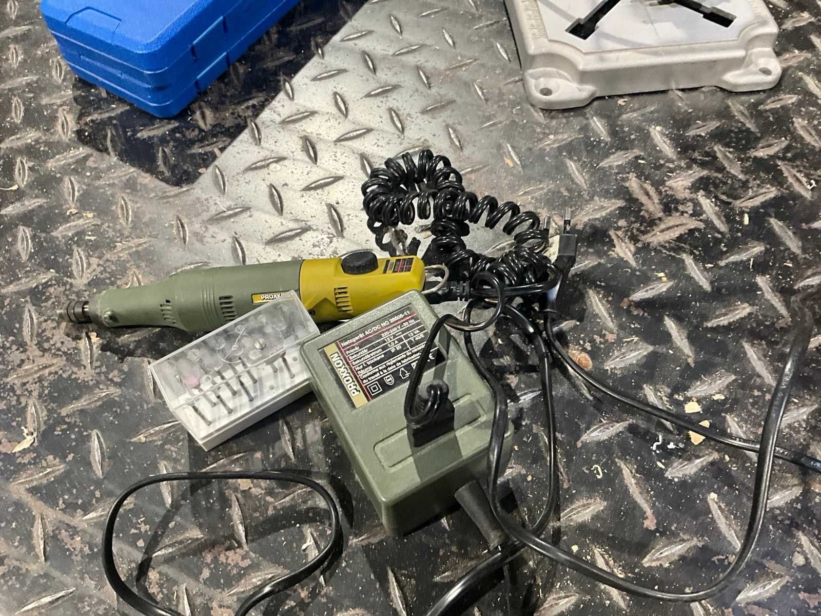 Waaronder Dremel boorwerkstation op staander, proxxon, 2x schuifmaat Precival