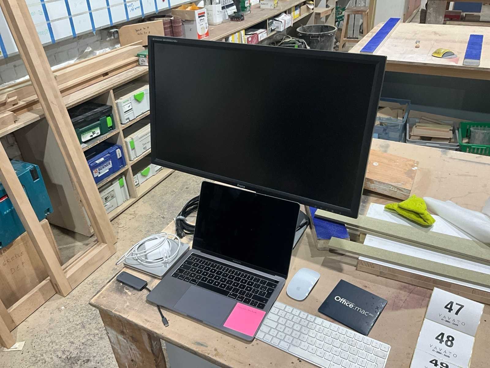 Scherm laptop is stuk maar compleet met monitor ILYAMA, aansluitkabel, oplader en diversen Merk: Apple Type: MacBook ProA1706