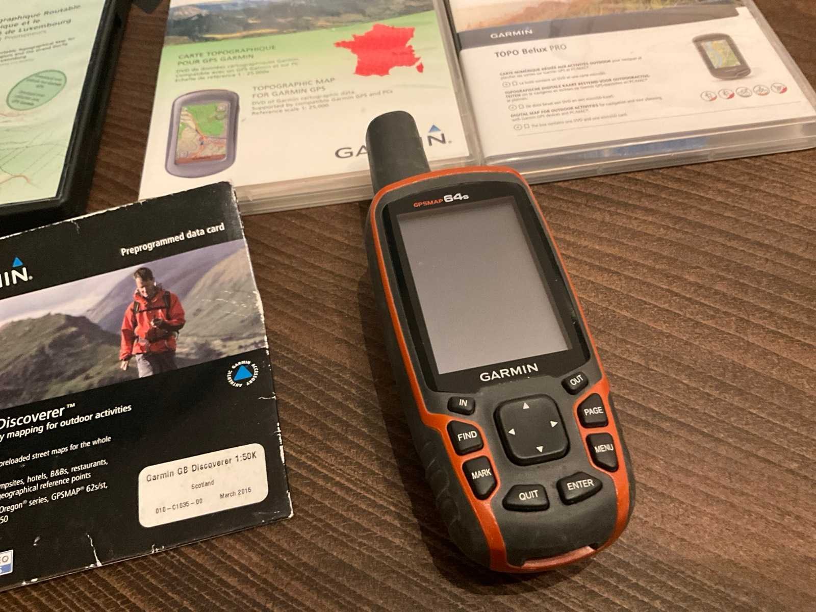 Compleet met 4 diverse topografische kaarten, zie foto, compeet met 2x walkie talkie Motorola T5422 en Sony recorder Merk: Garmin Model: Gpsmaps 64s