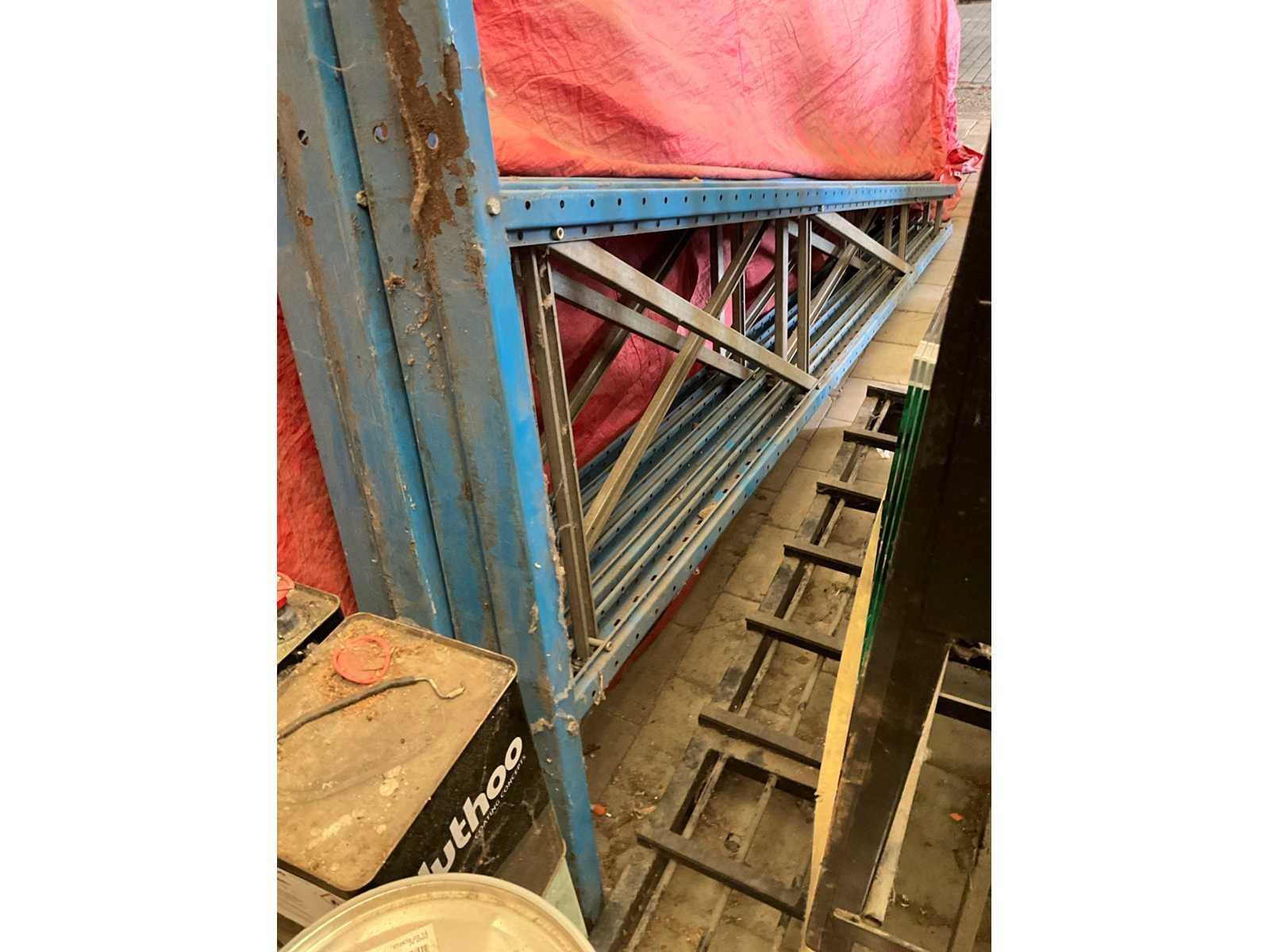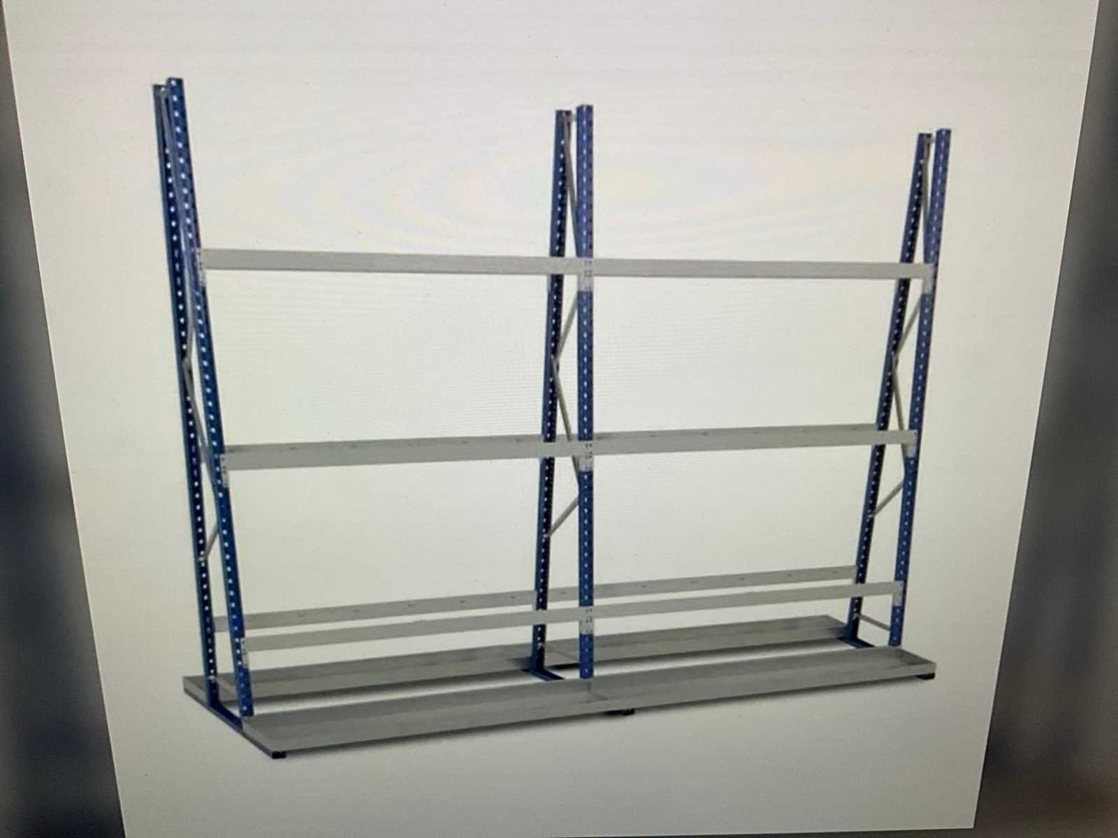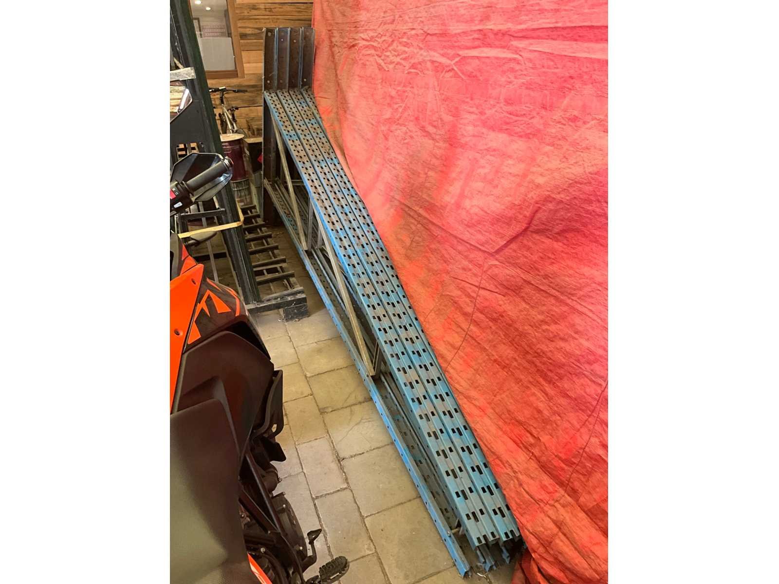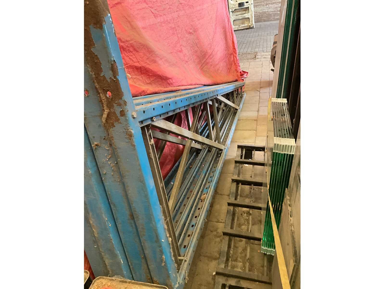 1ste foto indicatief, reeds gedemonteerd Aantal staanders: 4 Aantal liggers: 18 Demontabel: true Lengte: 600cm Breedte: 170cm Hoogte: 350cm