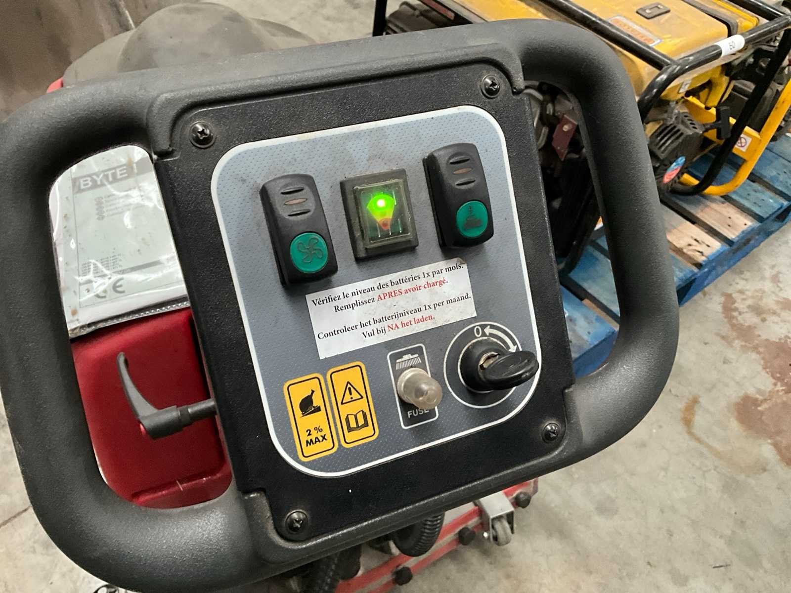 Voorzien van schrobborstel, aftrekker, ingebouwde lader, sleutel aanwezig, demo toestel Merk: RCM Type: Byte 1 Bouwjaar: 2022 Motorvermogen (kW): 1.1kW Aansluiting: 24V Machinegewicht: 120kg Afmeting l: 1000mm Afmeting b: 700mm Afmeting h: 1050mm