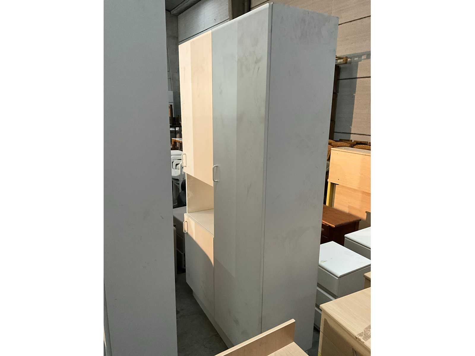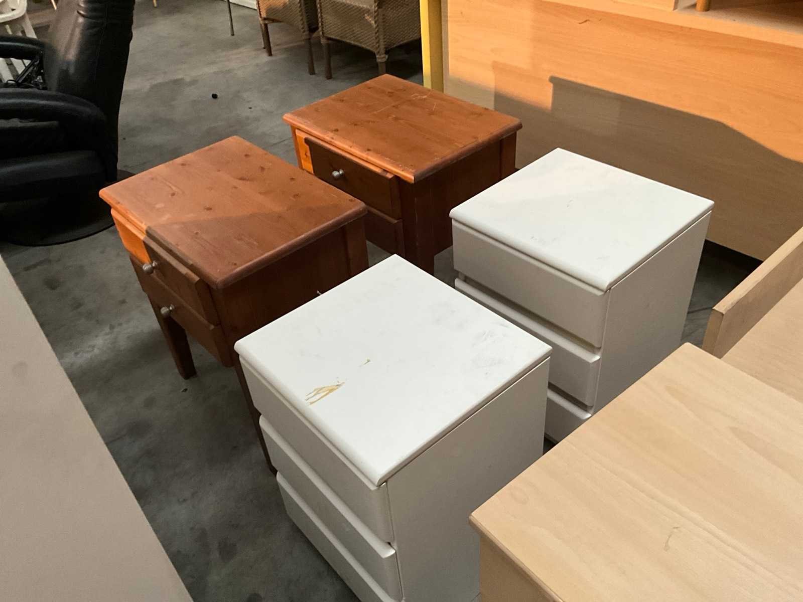 Bestaand uit 2x staande kast in wit fineer +4x nachtkastje waarvan 2x wit fineer +2x massief